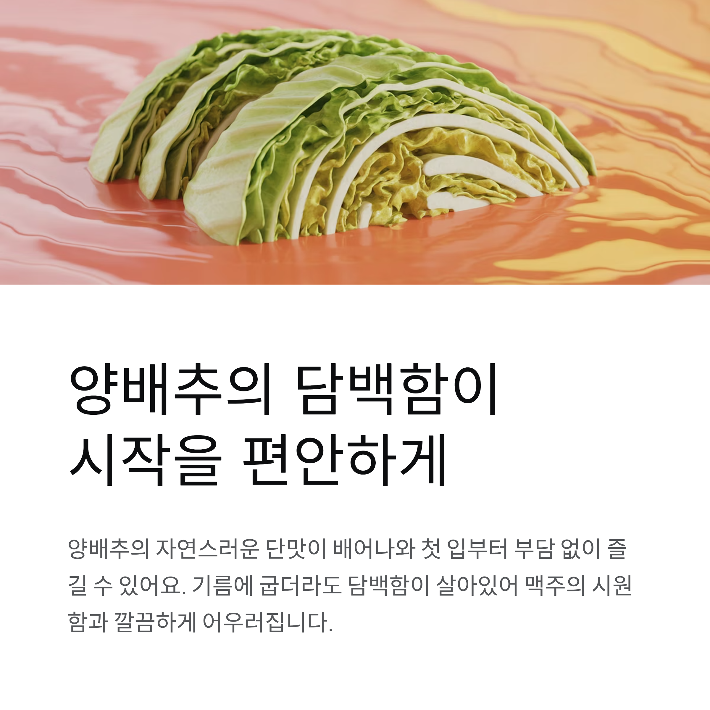 양배추가 주는 담백함이 첫 시작을 편안하게 만들어줘요
