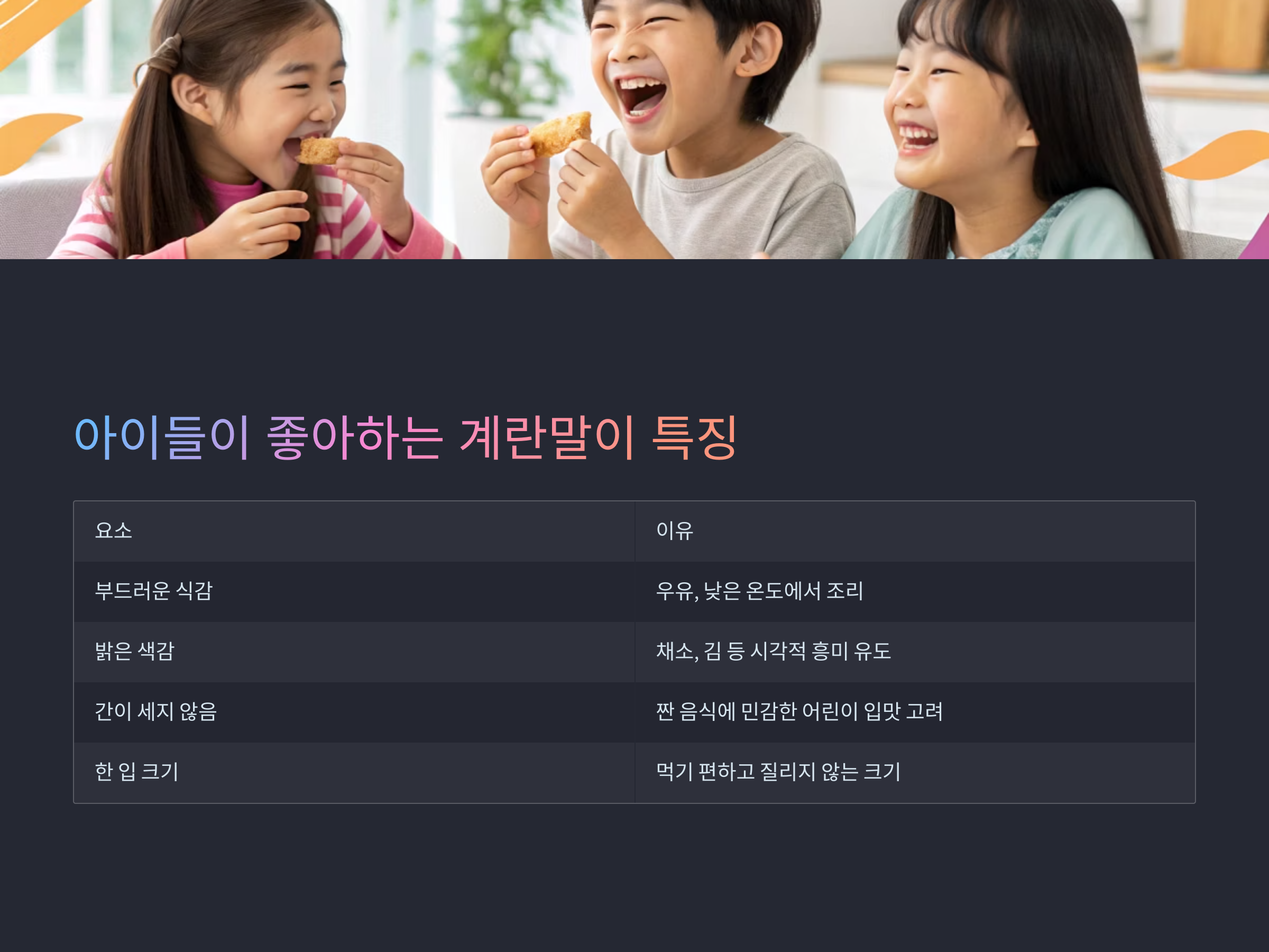 계란말이는 아이들 반찬으로 가장 안전하고 인기 있는 메뉴입니다
