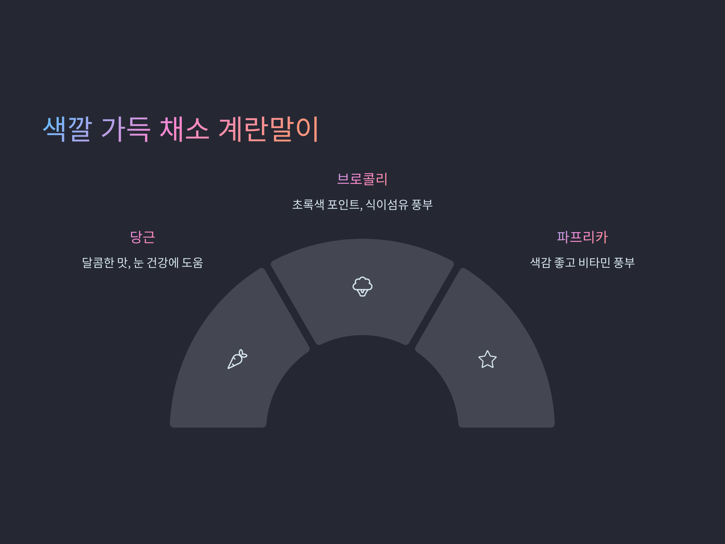 다진 파프리카, 당근, 브로콜리 등을 잘게 썰어 계란에 넣고 말아주면 아이들이 싫어하는 채소도 자연스럽게 먹게 되는 영양만점 반찬이 됩니다.