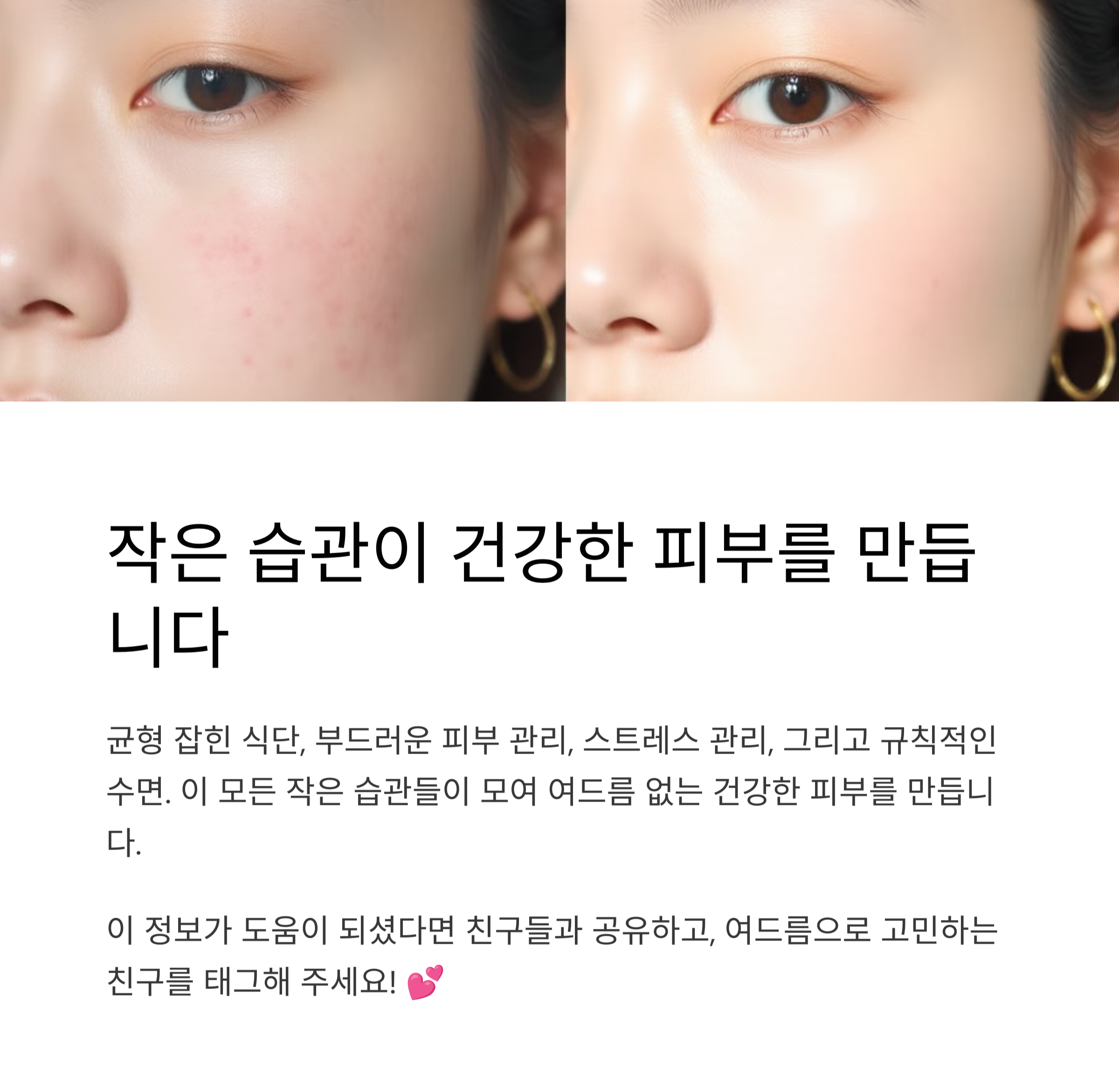 | 예방을 위한 습관 | 균형 잡힌 식단과 올바른 세안, 충분한 수면이 핵심입니다. |