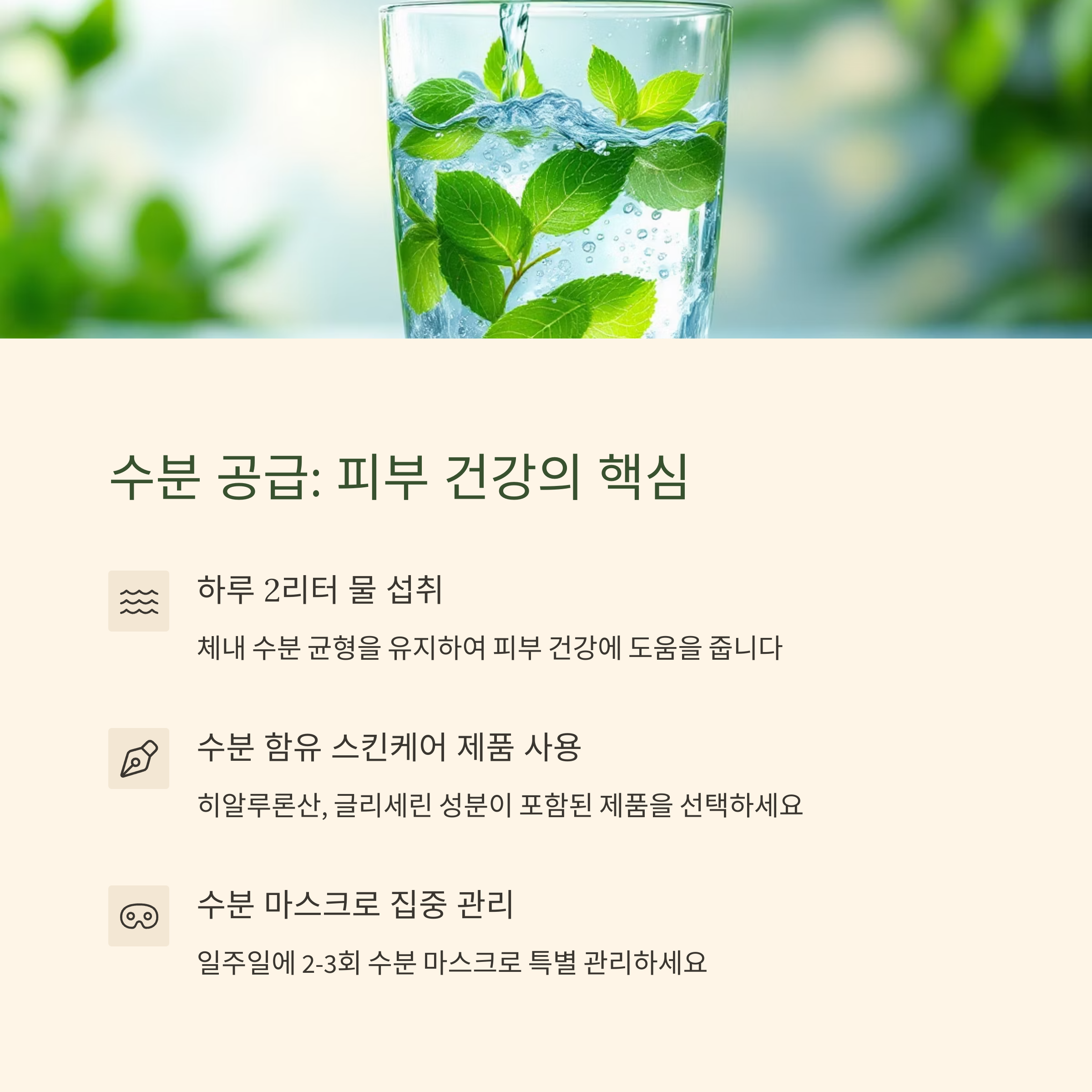 여름철 땀과 피지 분비는 피부를 민감하게 만들고, 수분 증발을 가속화시킵니다. 이를 방지하기 위해 피부 속까지 수분을 채워주는 보습이 중요합니다. 수분 크림뿐 아니라, 미스트나 수딩 젤을 활용하면 외출 중에도 수시로 피부를 진정시킬 수 있습니다. 특히 알로에베라나 판테놀 같은 진정 성분이 함유된 제품은 자극받은 피부를 빠르게 회복시키는 데 큰 도움이 됩니다.