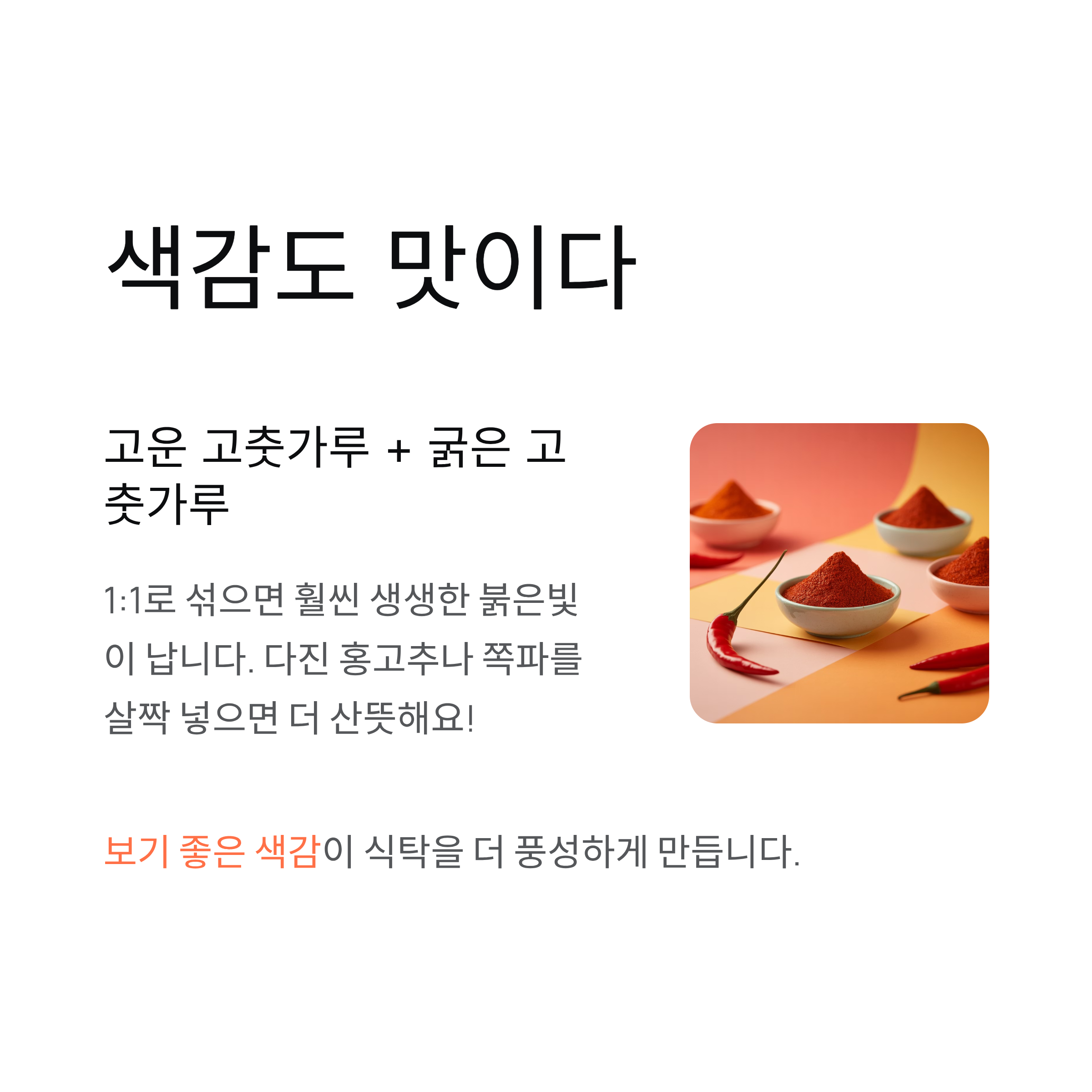 네 번째 포인트: 보기 좋은 색감이 맛도 살린다