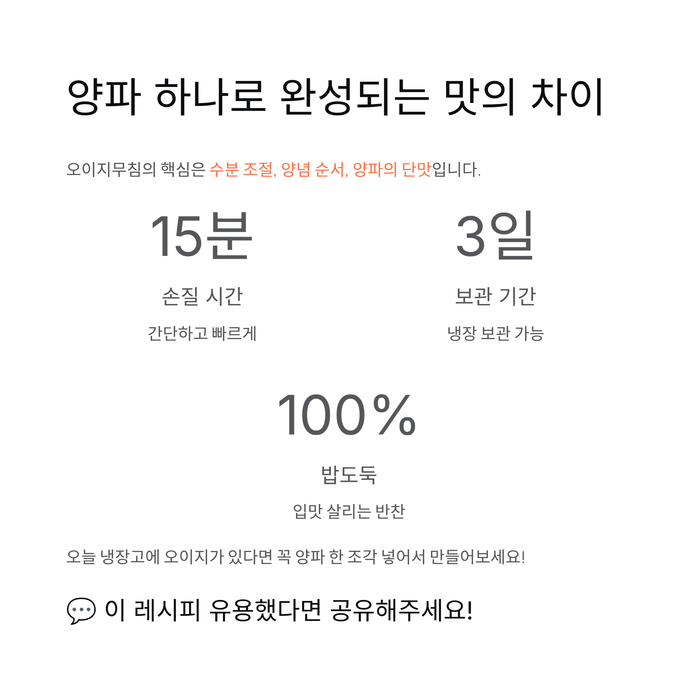 결국 오이지무침의 핵심은 ‘수분 조절’과 ‘양념 순서’, 그리고 ‘양파의 단맛’입니다.