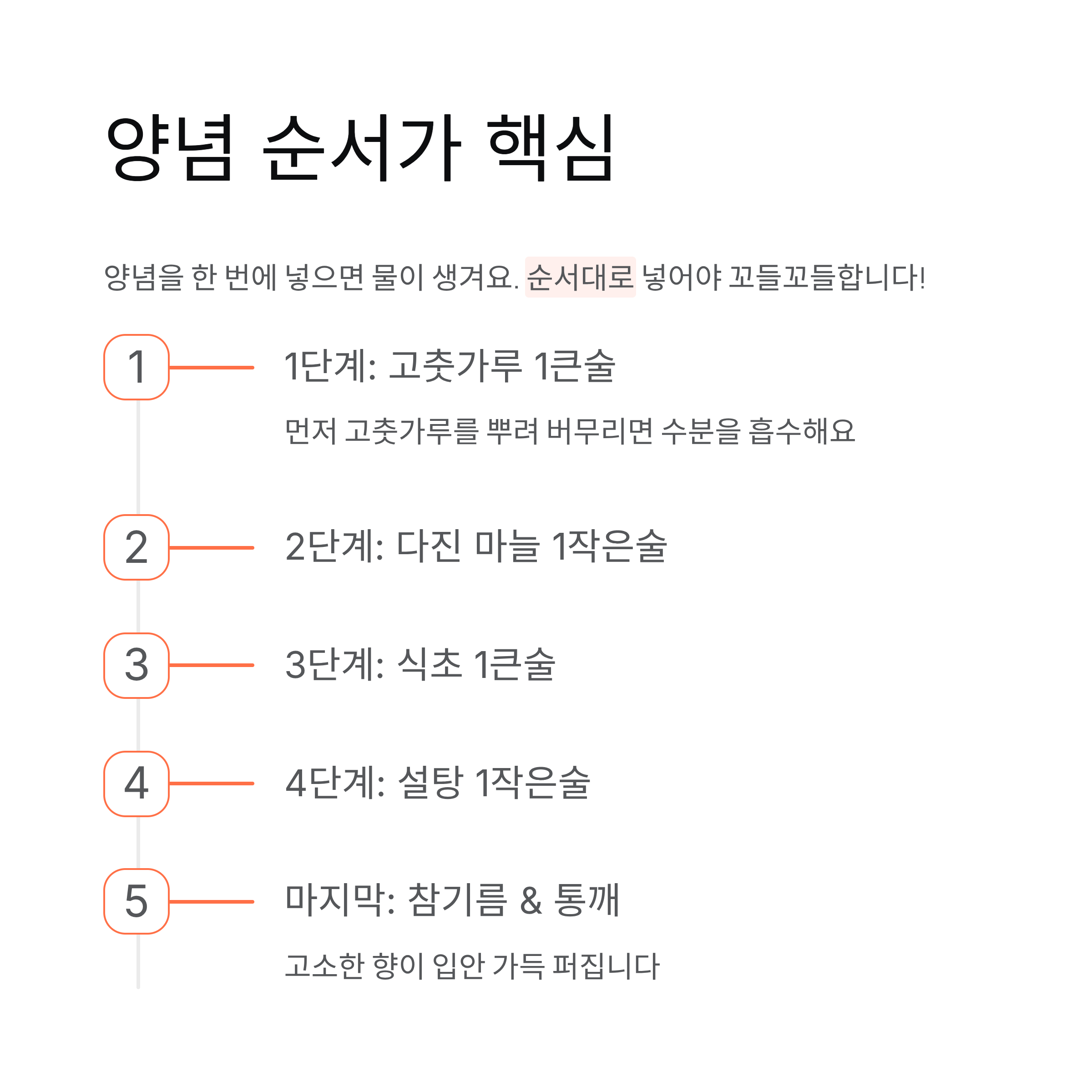 세 번째 포인트: 꼬들꼬들한 식감의 비밀, 양념 순서