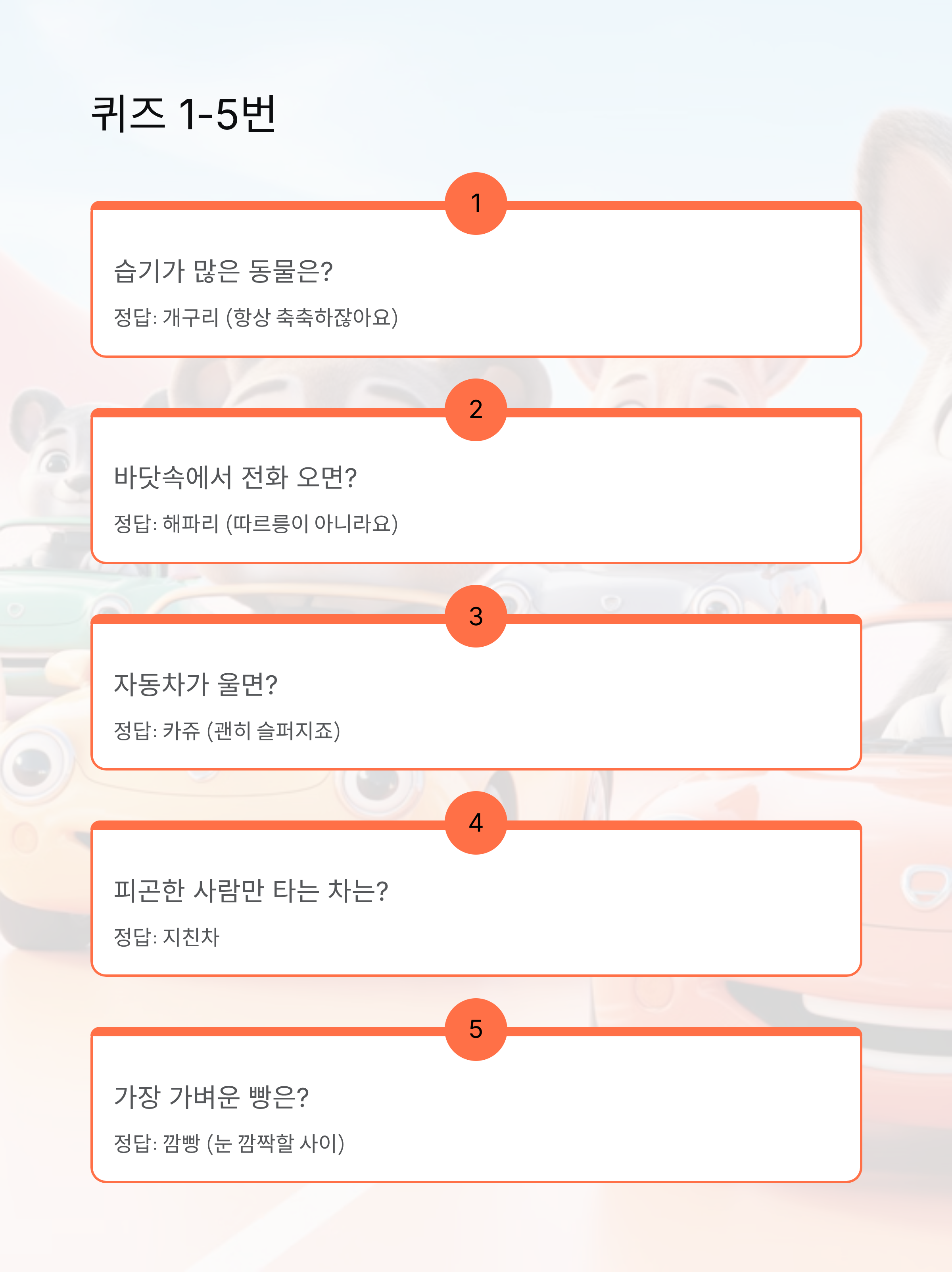 지친 날, 머리 아픈 날, 그냥 심심한 날에도 이런 퀴즈는 분위기를 확 바꿔줘요. 덕분에 이야깃거리도 생기고 웃음도 늘어나죠.