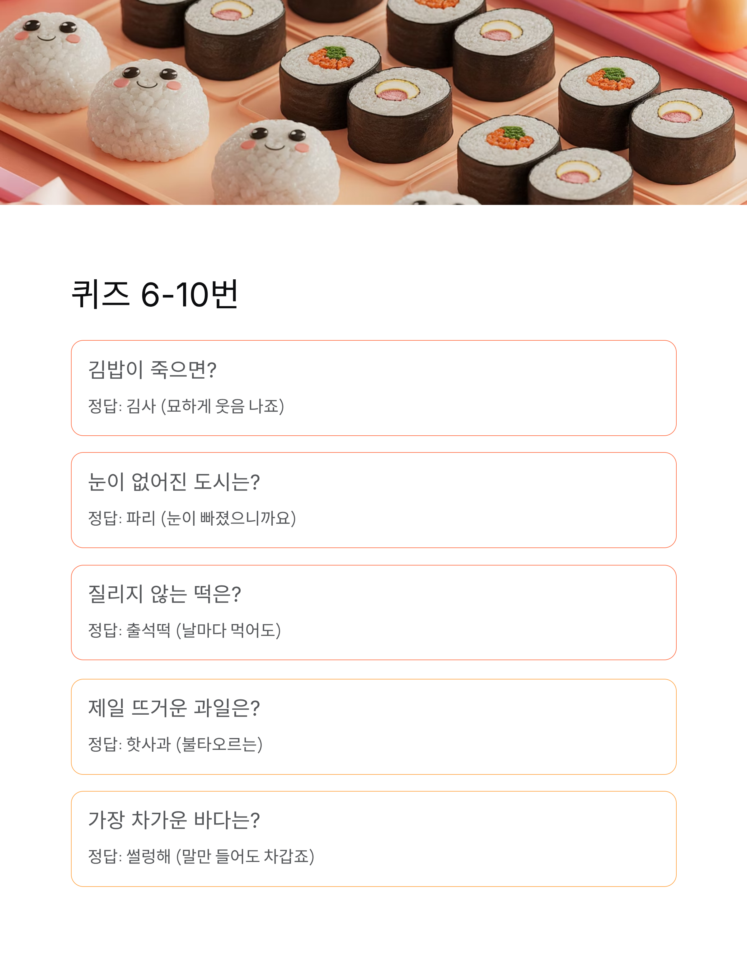 2025.10.20 - [생활정보] - 웃긴 넌센스 퀴즈 모음 20개 문제와 답 – 아재개그 감성 폭발!