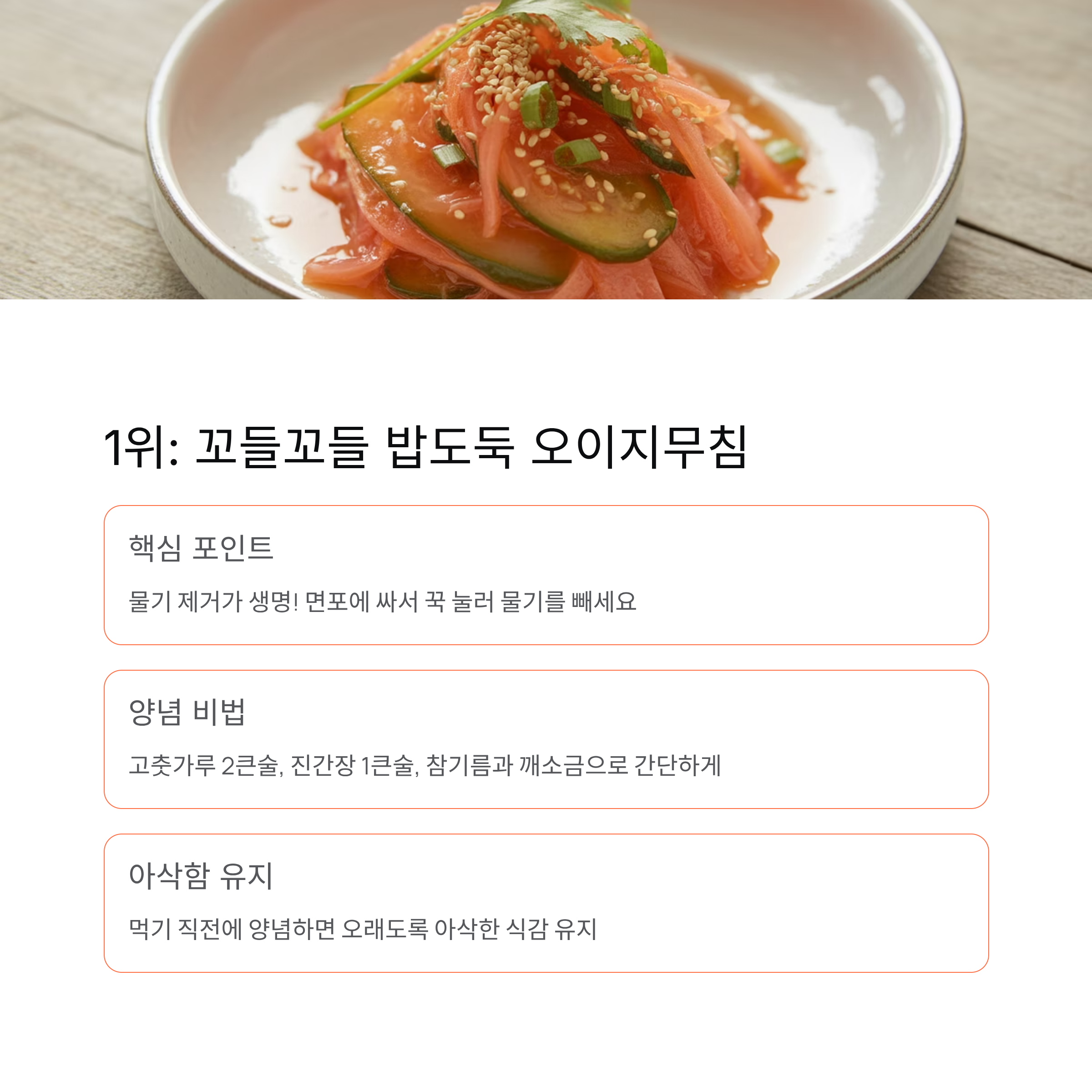 특히 먹기 직전에 양념하는 습관을 들이면 아삭한 식감을 오래 유지할 수 있습니다.