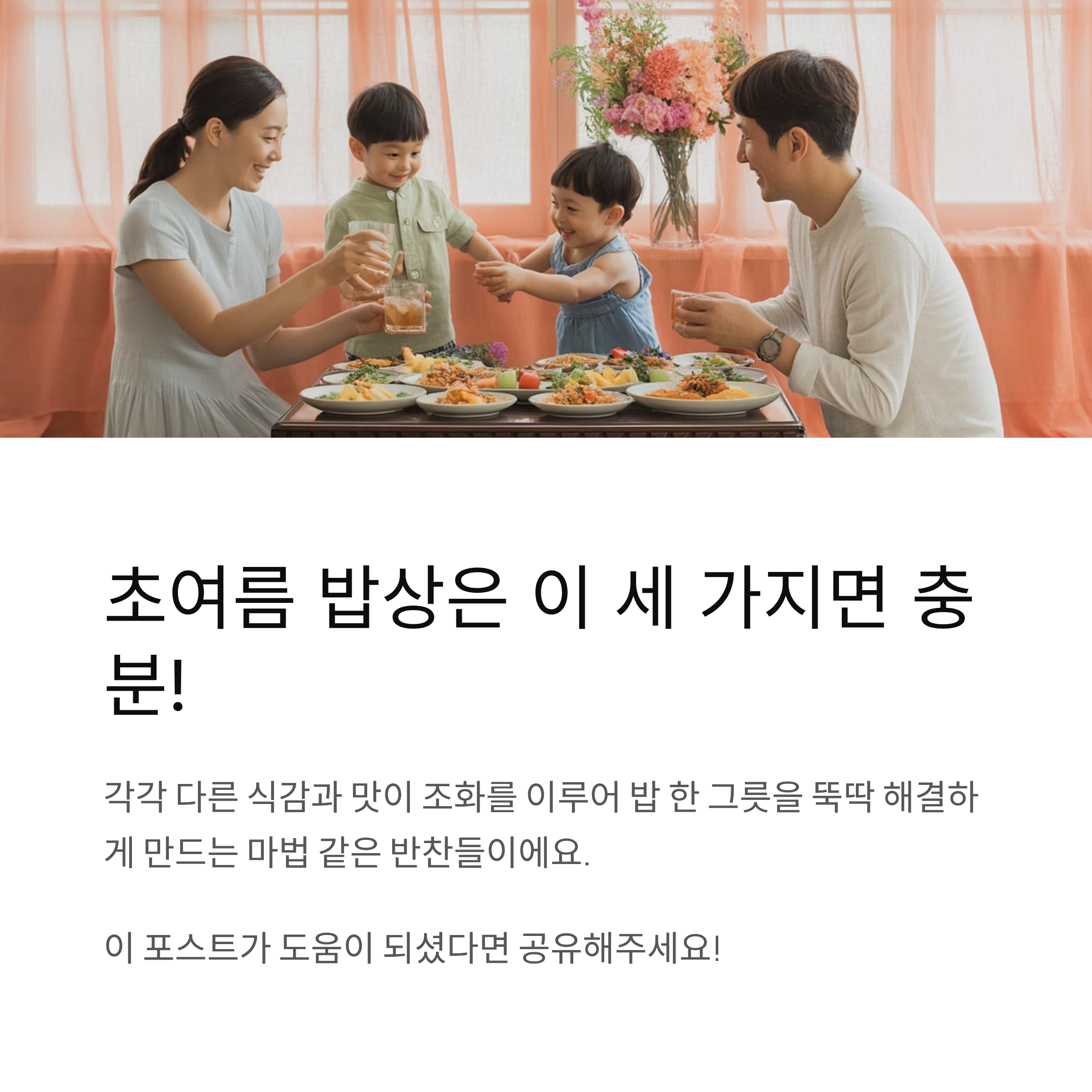 이럴 때 시원하면서도 부담 없는 제철 반찬이 큰 힘이 되어주는데요.