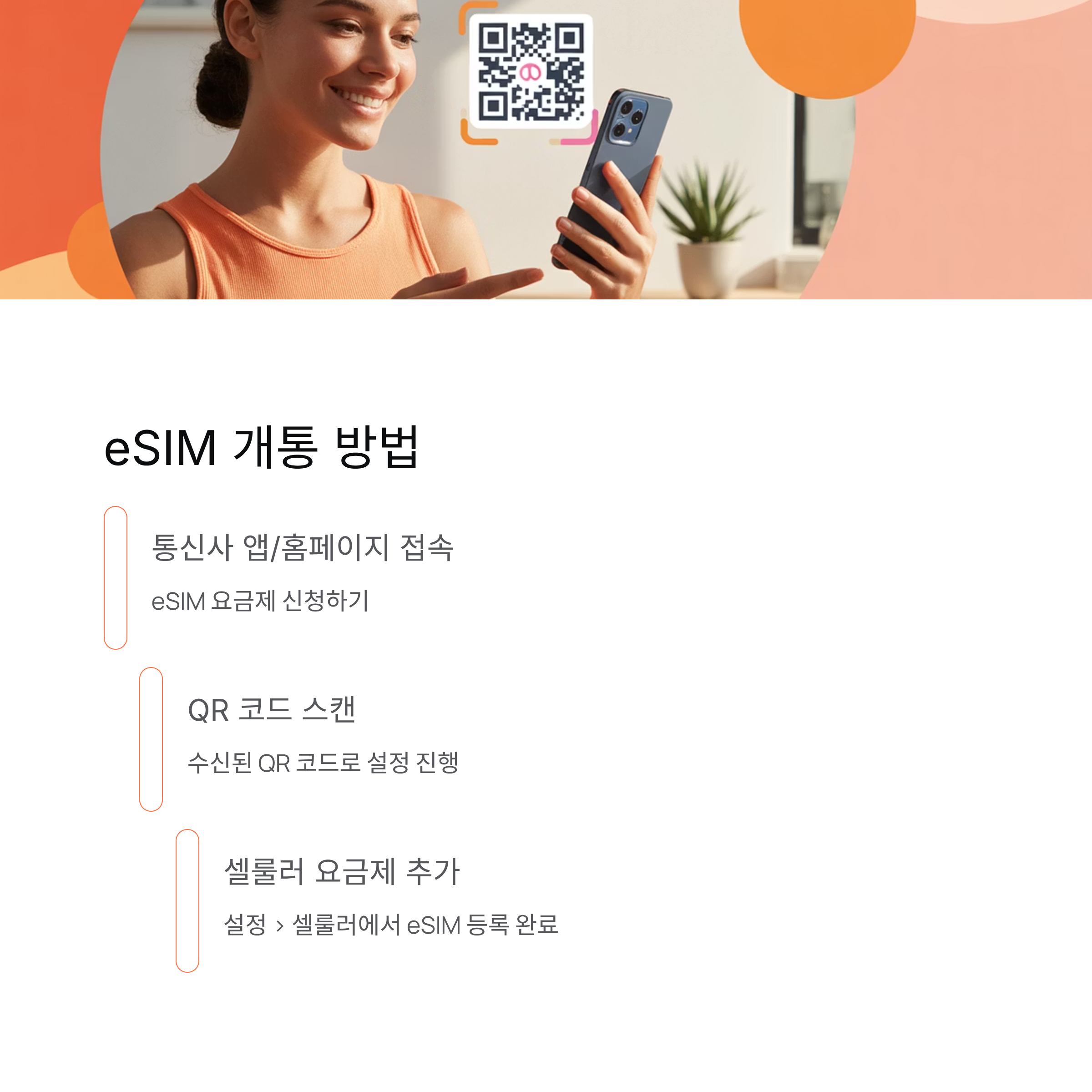 eSIM은 실물 유심 없이 QR 코드 스캔으로 개통이 가능하며,