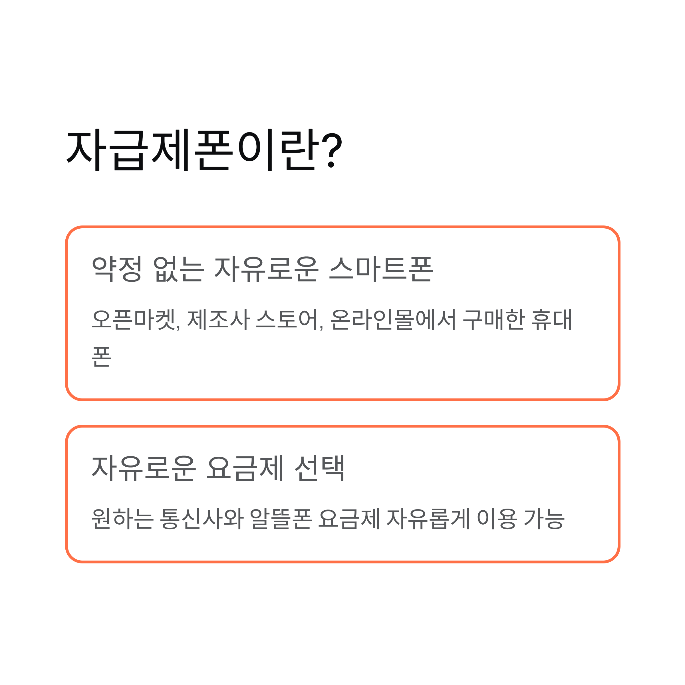 ※ 자급제폰은 모든 통신사 및 알뜰폰과 호환됩니다. 단, 5G 단말은 요금제 호환성 체크 필수
