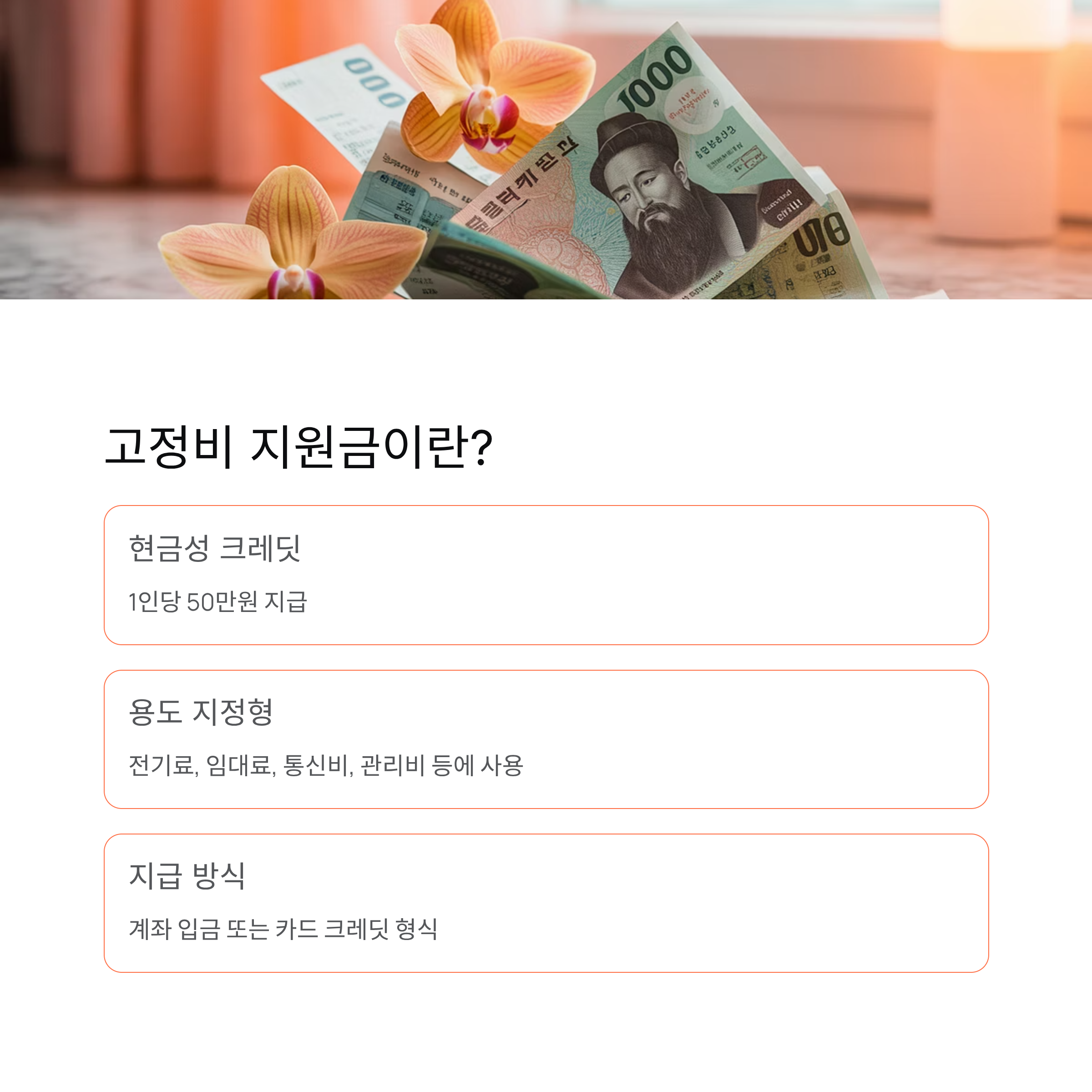 경영 부담을 덜기 위한 2025년 자영업자 고정비 지원금(50만원) 신청이 시작되었습니다. 소상공인·자영업자의 고정비 지출을 보완하기 위해 마련된 이번 지원은 전기요금, 임대료, 통신비 등 필수 고정지출에 직접 사용할 수 있는 방식으로 지급되며, 신청은 소상공인24 홈페이지에서 가능합니다. 정확한 신청 요건과 절차, 주의사항까지 정리해드립니다.