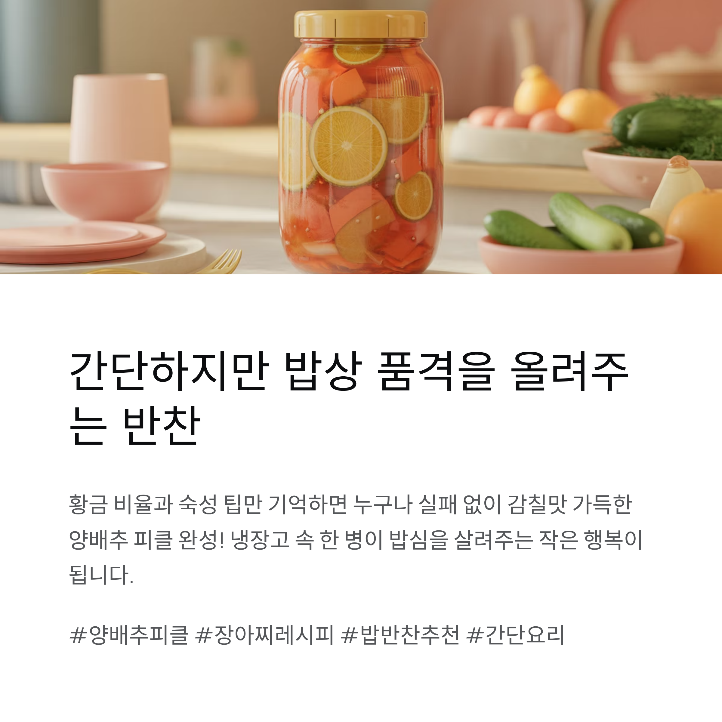 결론: 양배추 피클, 간단하지만 밥상 품격을 올려주는 반찬