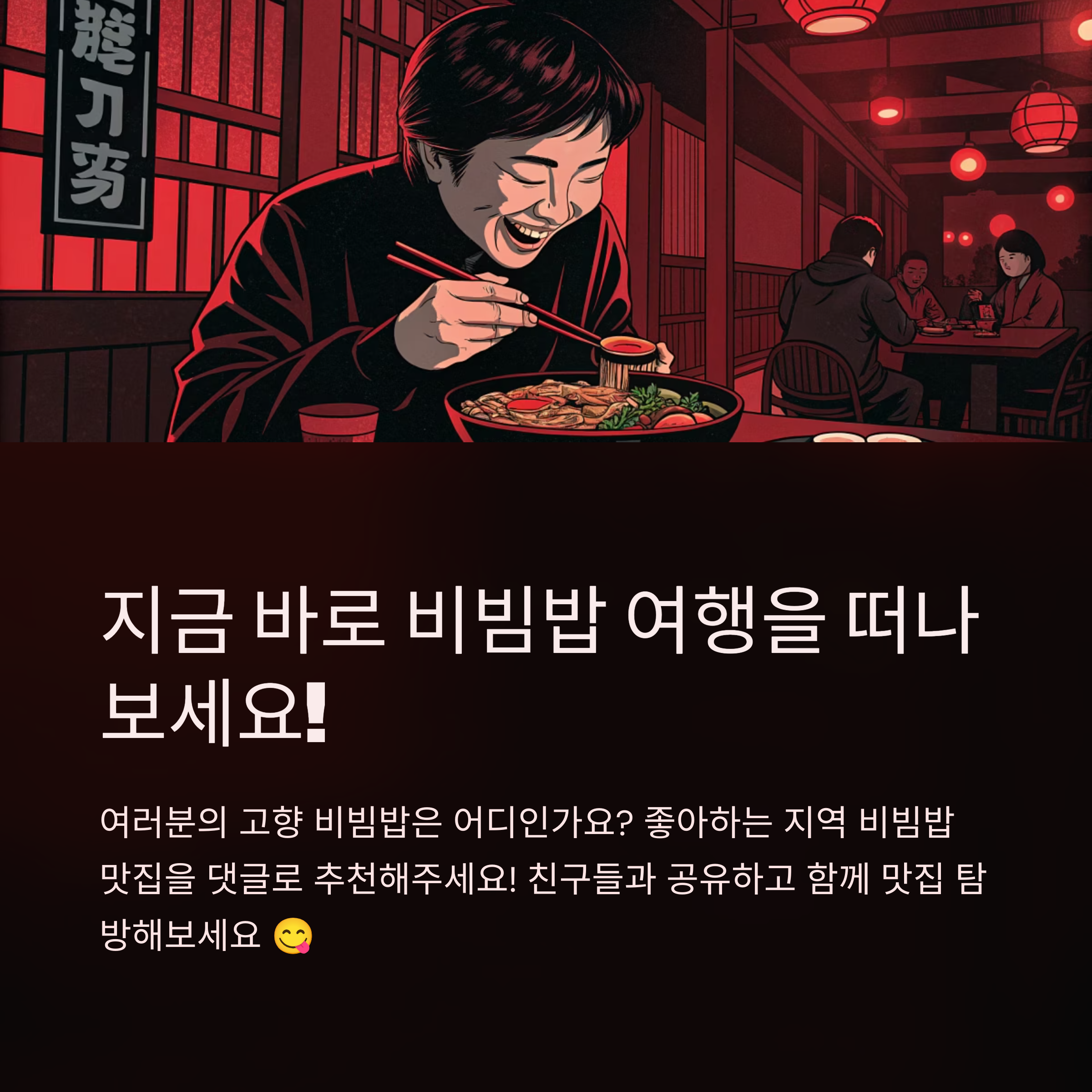 이처럼 전국 각지에는 지역의 특색을 살린 다양한 비빔밥 맛집이 존재합니다. 여행 중 해당 지역을 방문하신다면, 그 지역의 대표 비빔밥을 맛보는 것도 좋은 경험이 될 것입니다.(hotplacehunter.co.kr)