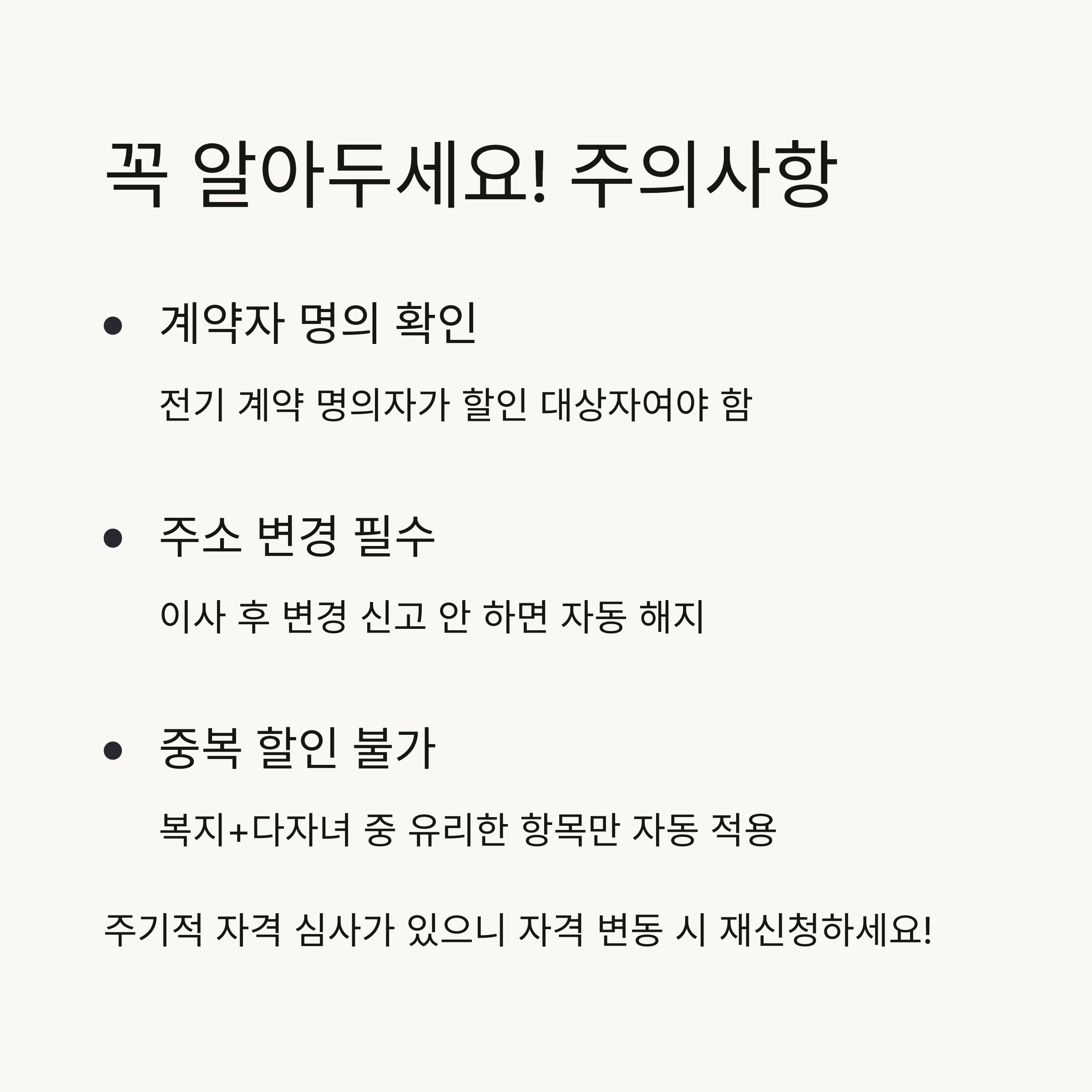 전기요금 할인, 꼭 알아야 할 주의사항
