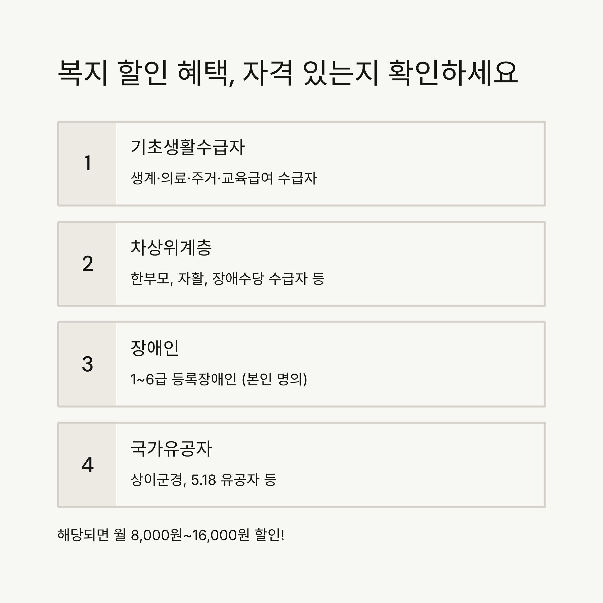 복지 할인 대상, 이런 조건이면 신청하세요