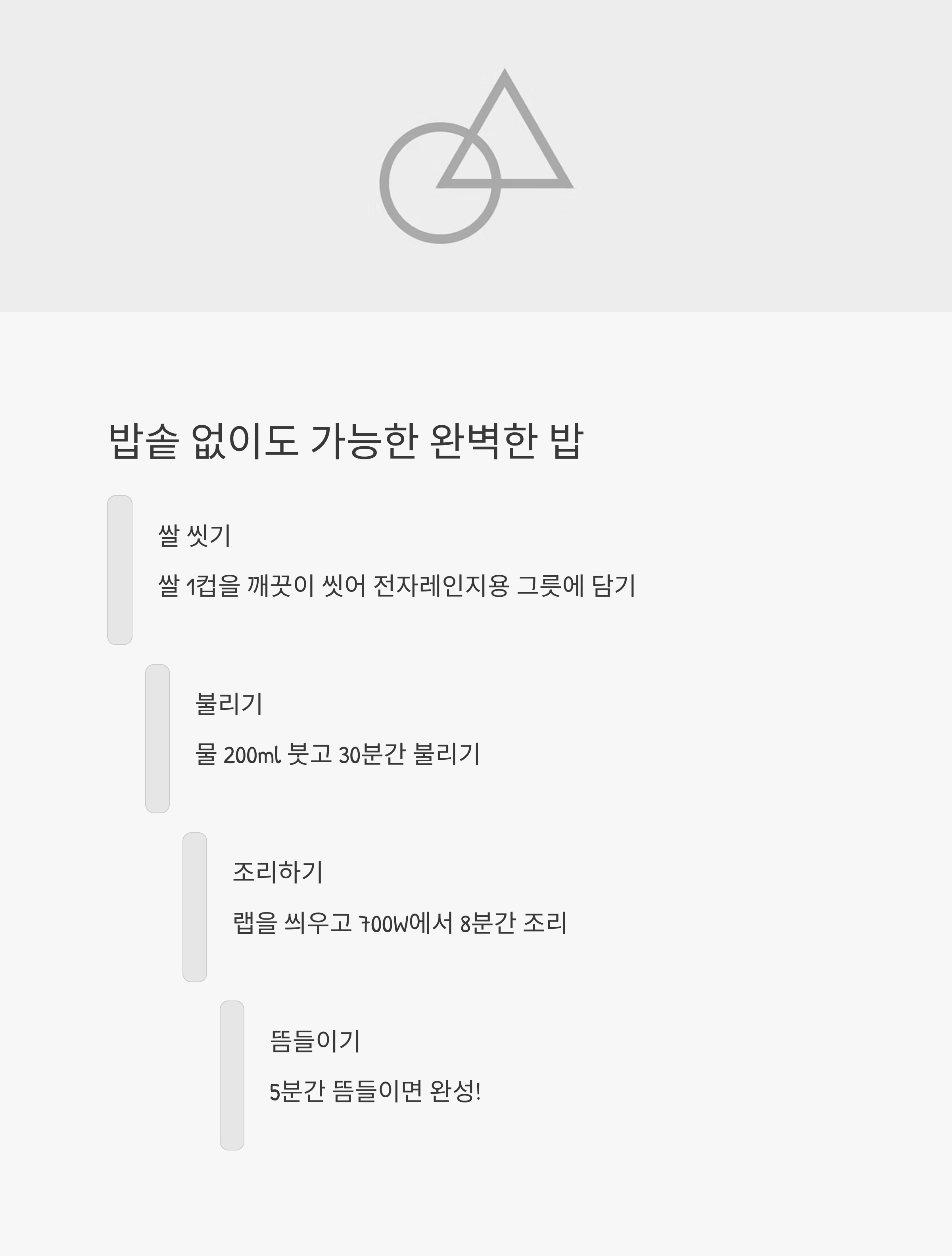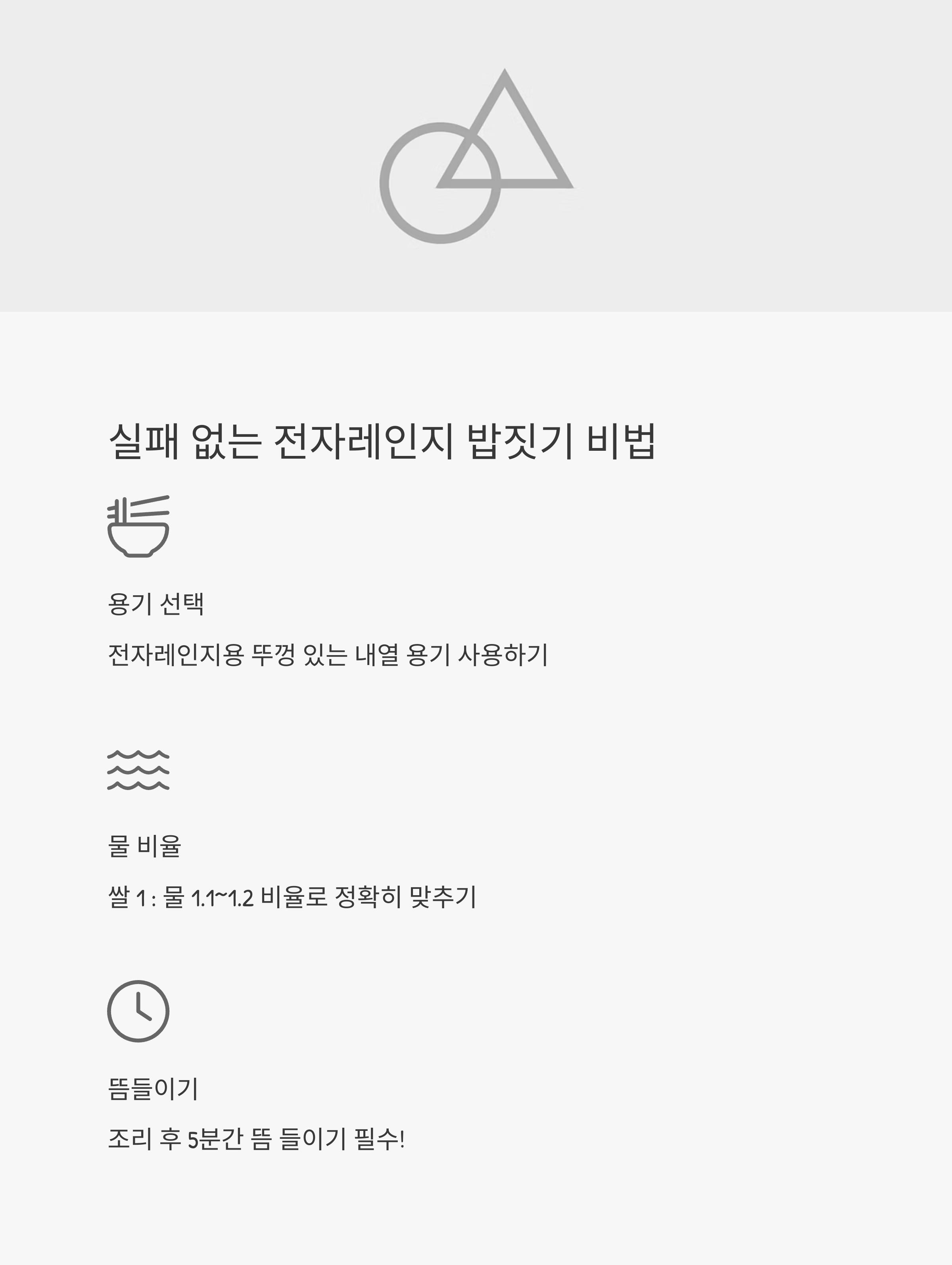 | 뜸 들이기 | 조리 후 5분간 뜸을 꼭 들일 것 |