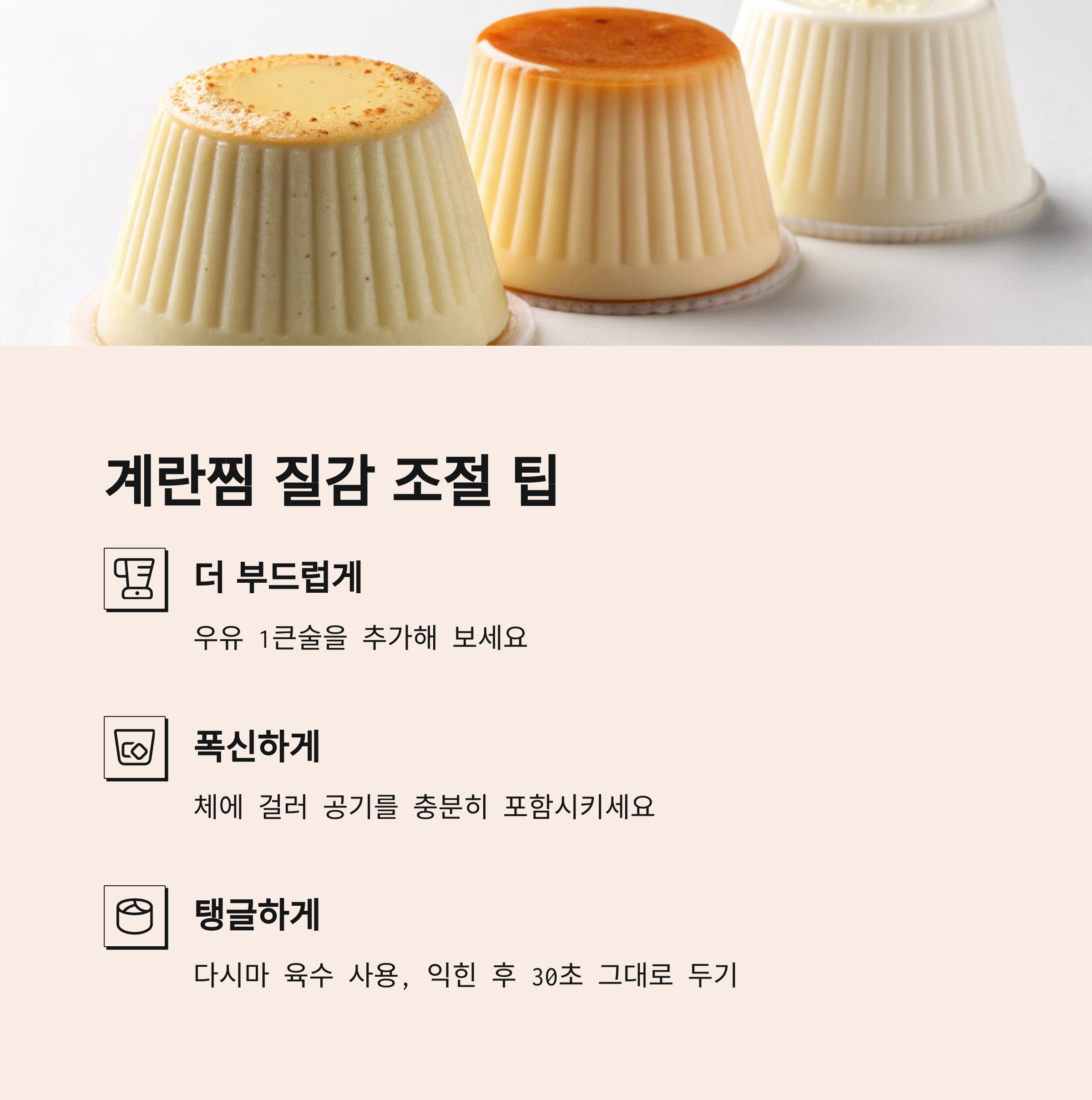- 폭신하게 하고 싶다면: 체에 걸러 공기를 충분히 포함시킨 계란을 사용하세요.