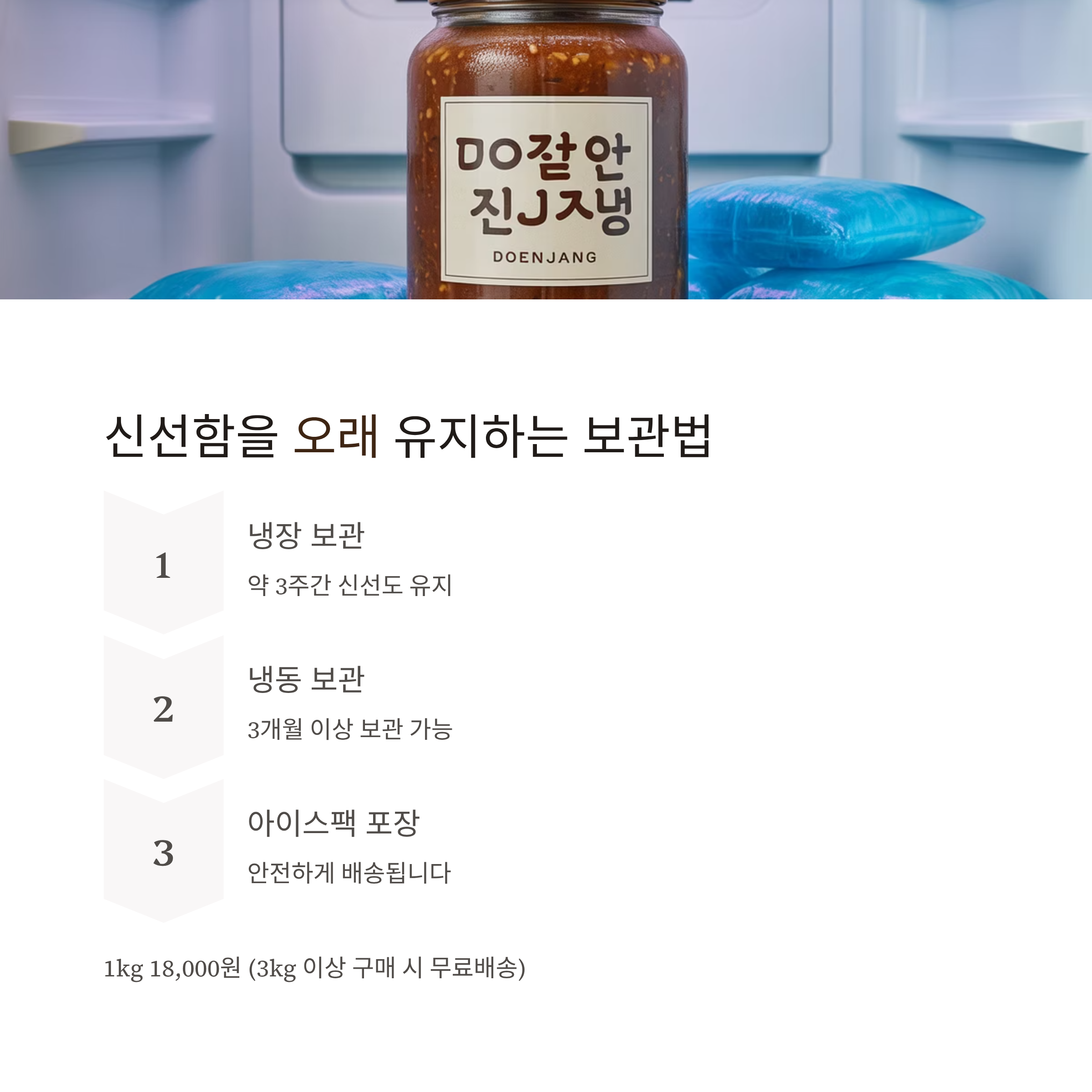 - 냉장 보관 시 약 3주 신선도 유지
