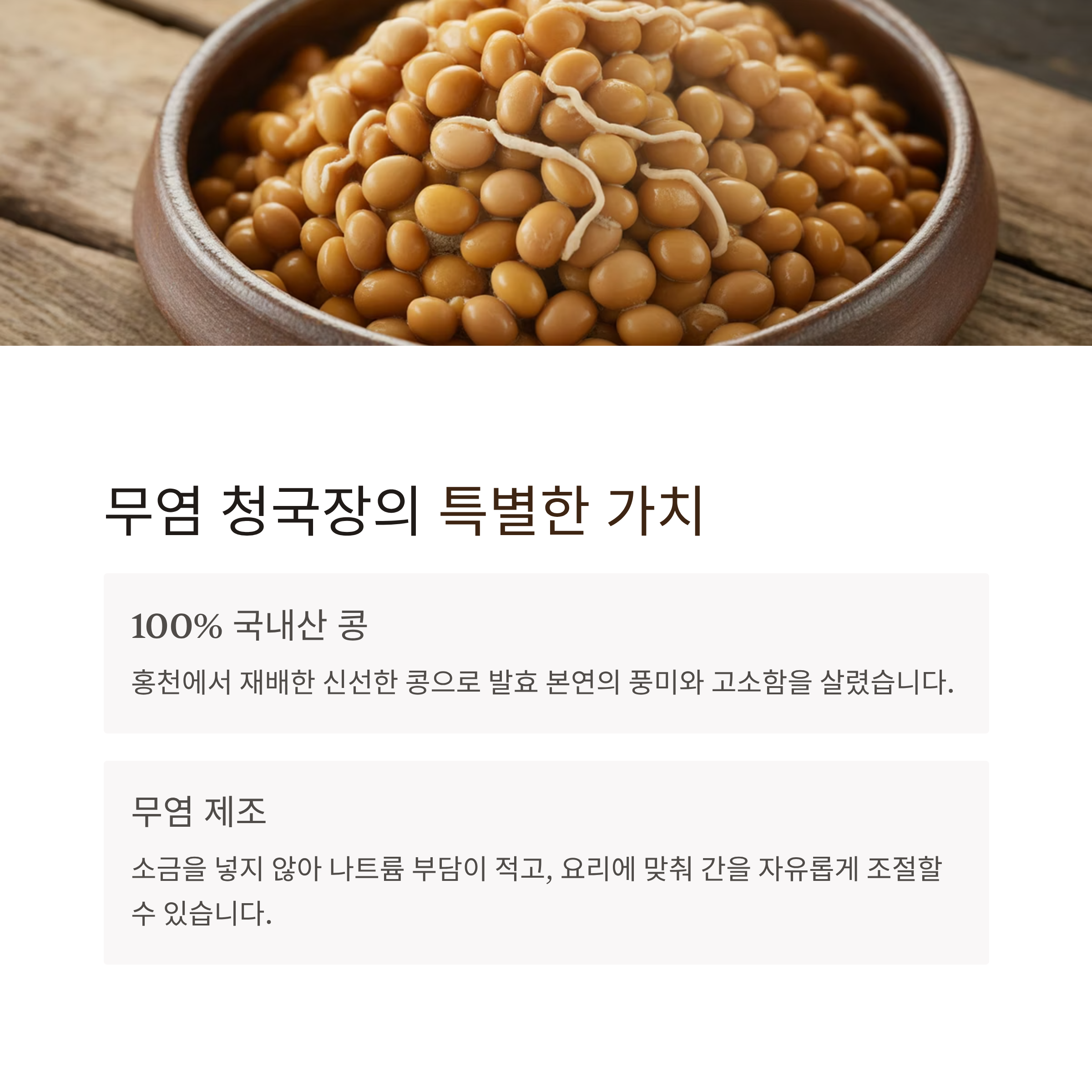 국내산 콩과 전통 발효, 그리고 무염의 건강함까지 담은