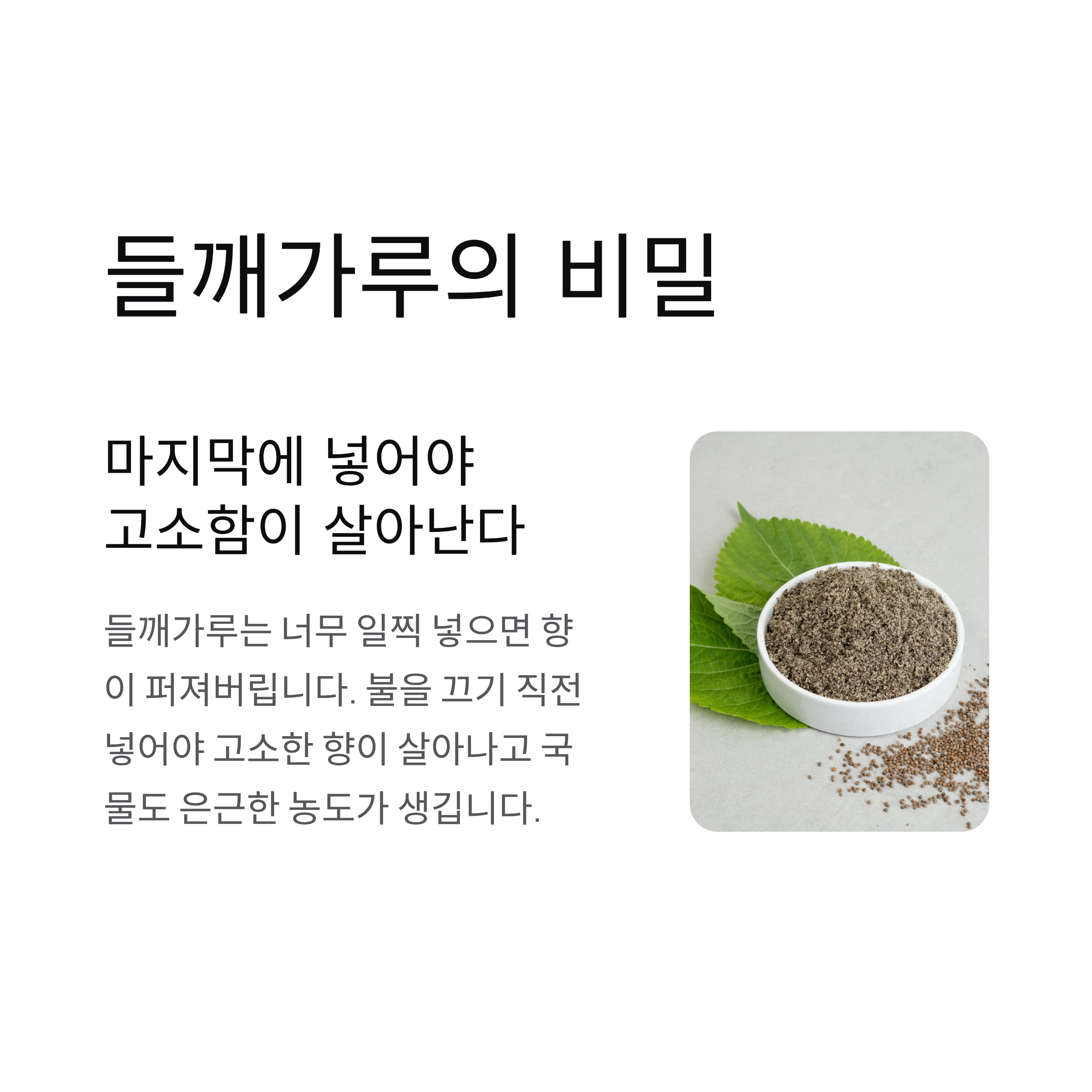 “들깨가루는 언제 넣어야 하나요”
