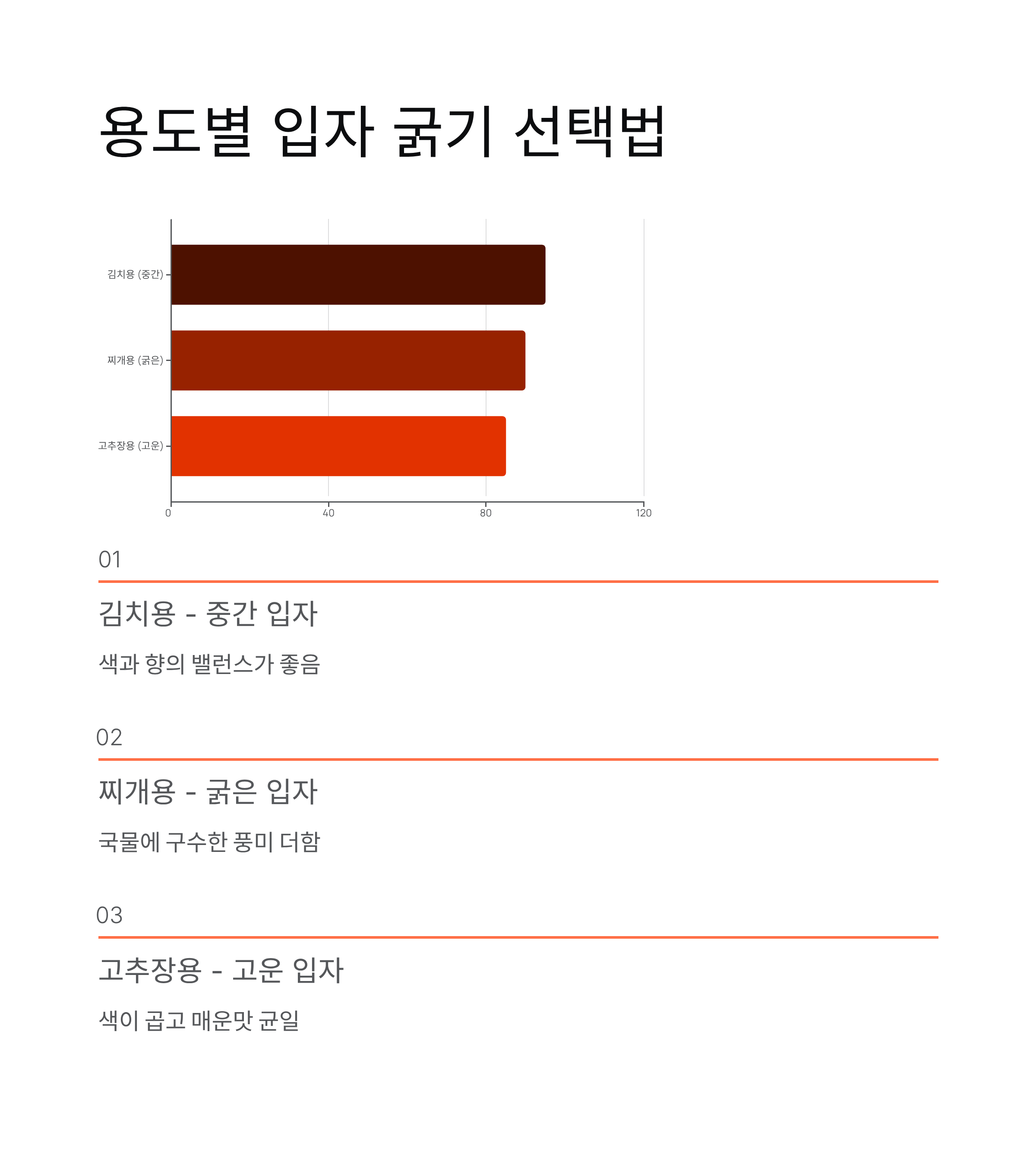 | 김치용 | 중간 입자 | 색과 향의 밸런스 |