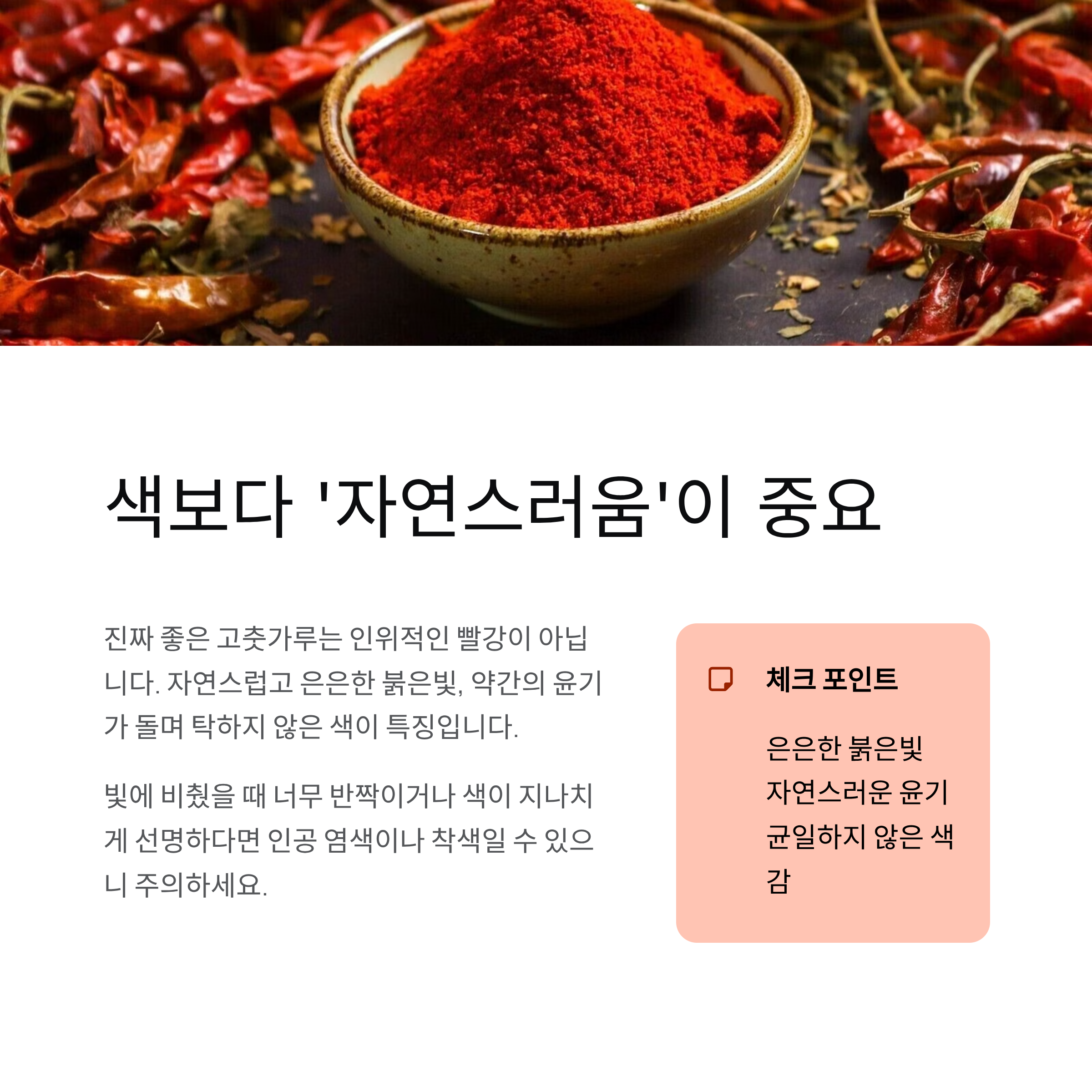 결론, 좋은 고춧가루는 ‘색·향·질감’이 만든다