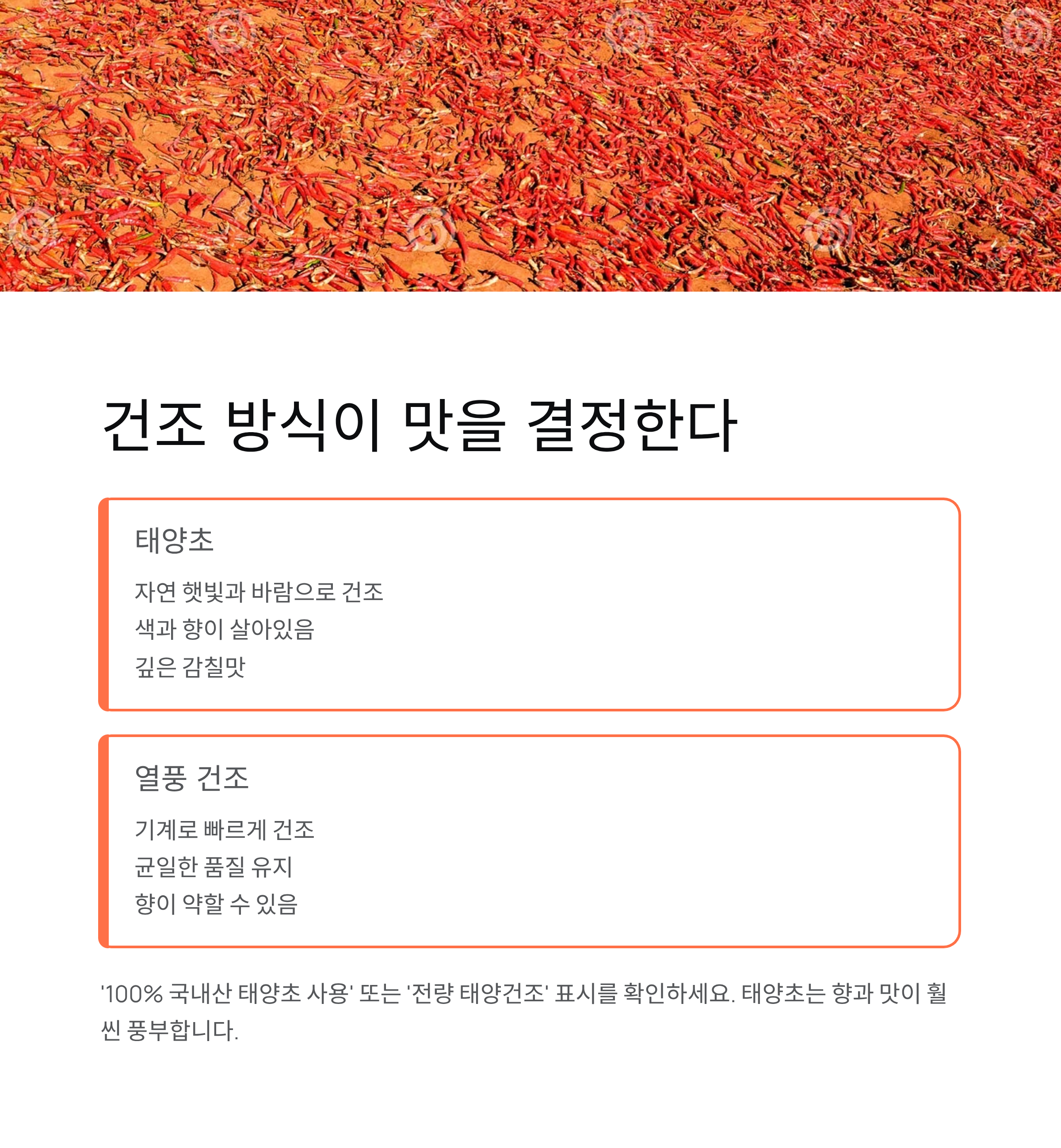 태양초인지, 건조기인지 꼭 확인하기
