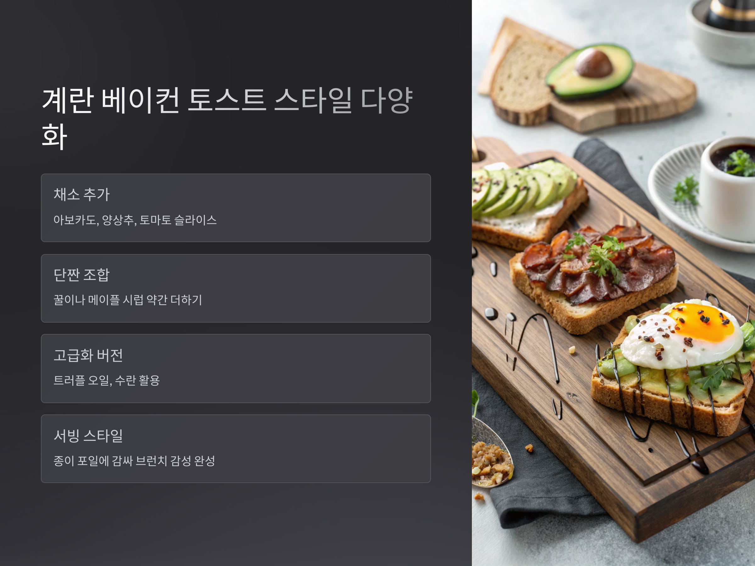계란 베이컨 토스트 스타일 다양화 팁