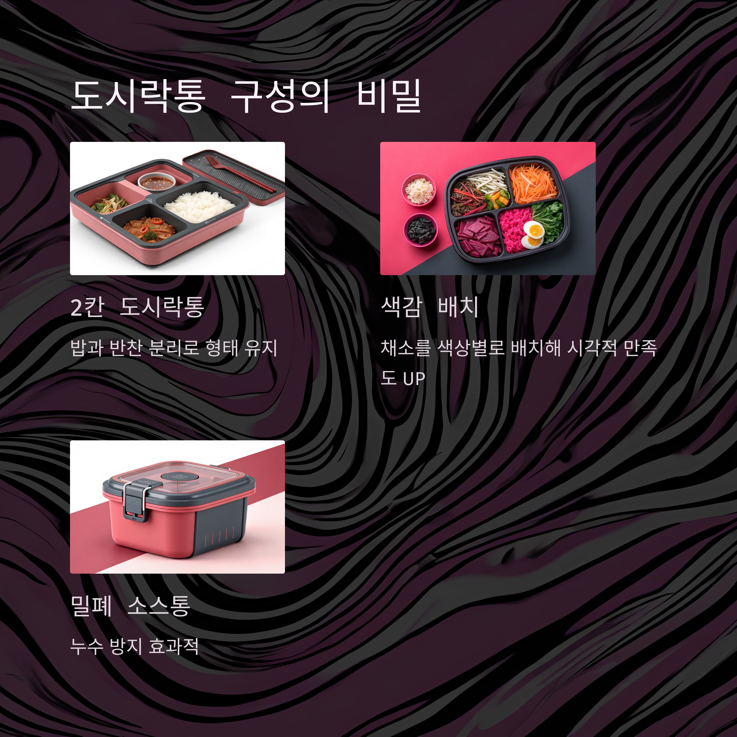 실용성과 맛을 모두 갖춘 완벽한 도시락 메뉴입니다.