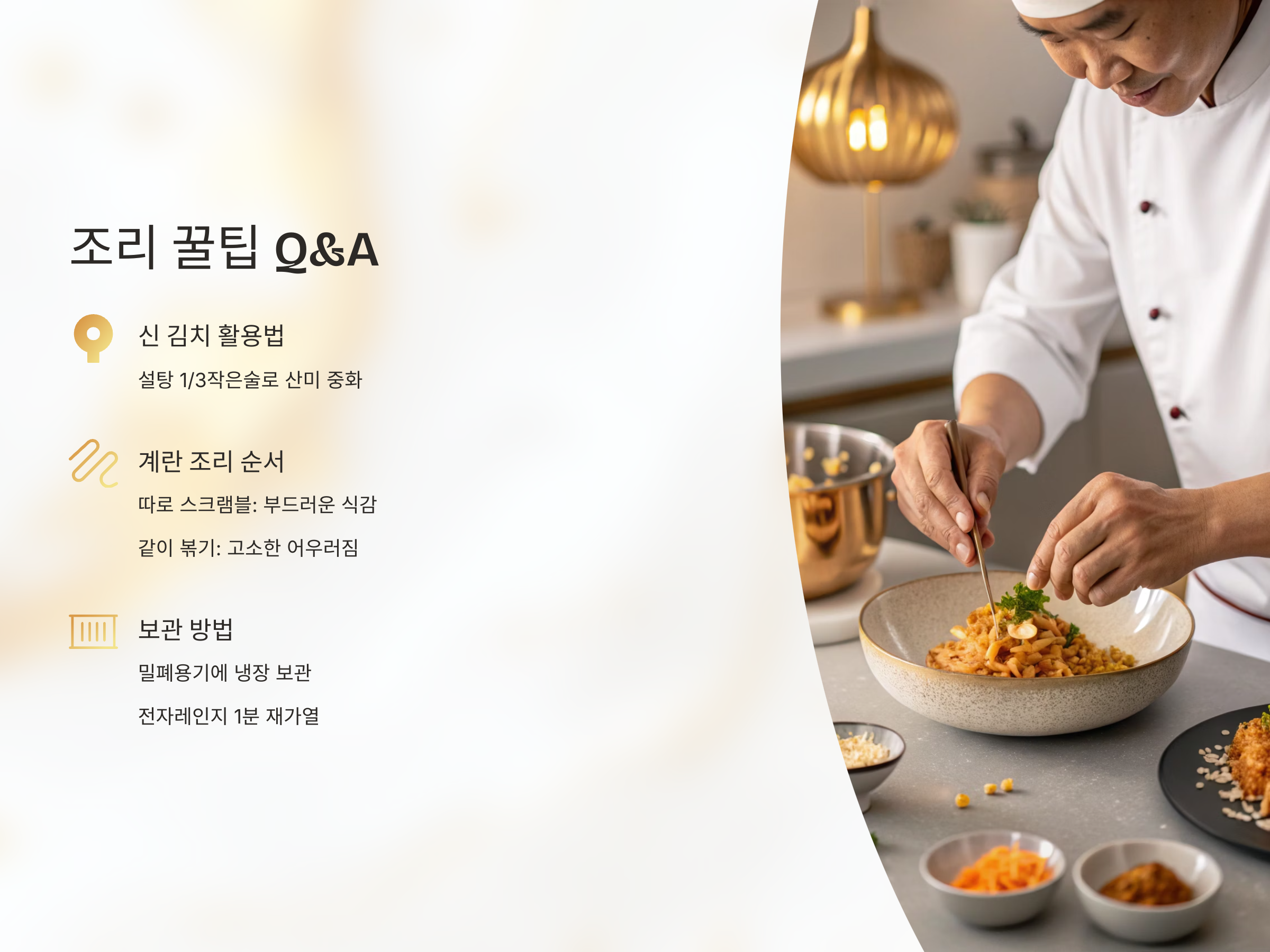 김치는 한국인의 밥상에서 빠질 수 없는 대표 반찬이고, 계란은 고소한 풍미와 영양을 더해주는 완벽한 식재료입니다.