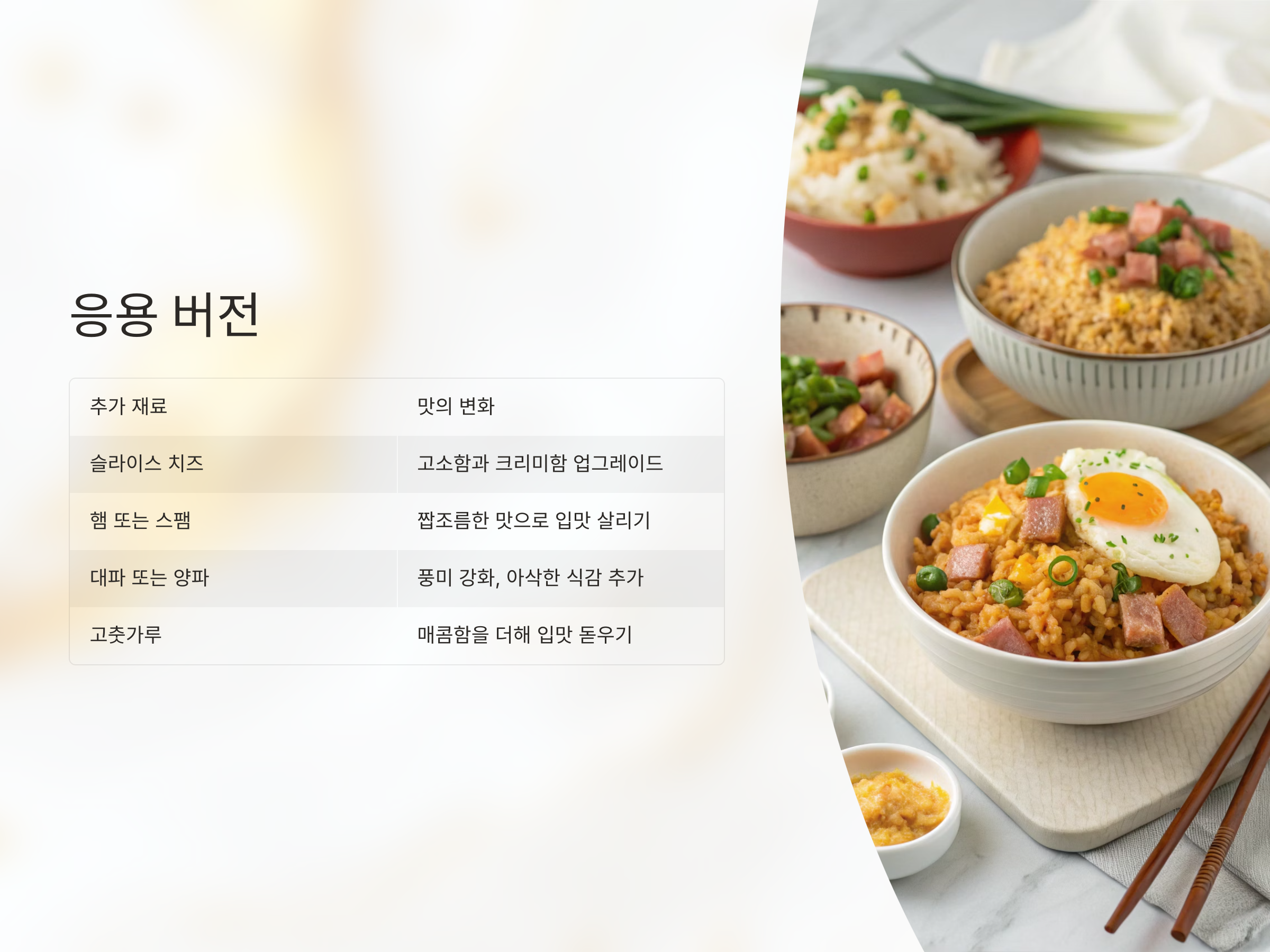 팁: 김치 국물을 조금 넣으면 볶음밥에 깊은 감칠맛이 더해집니다.