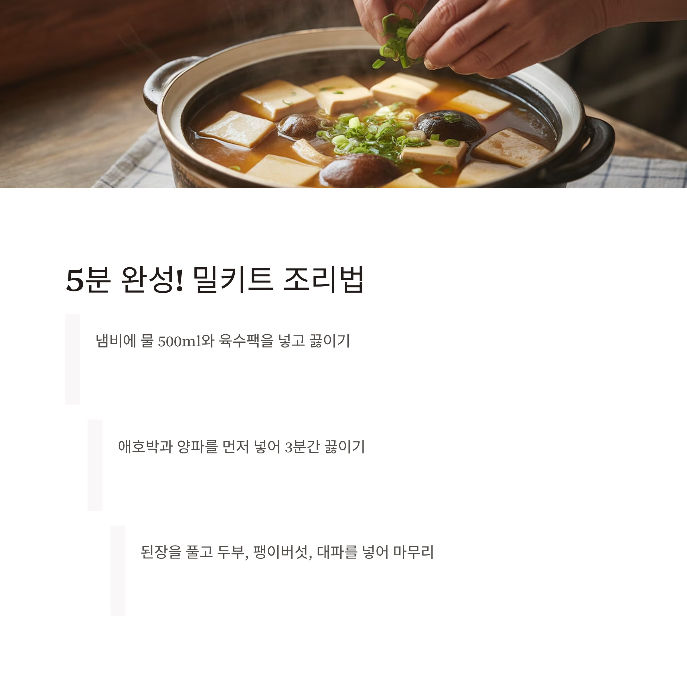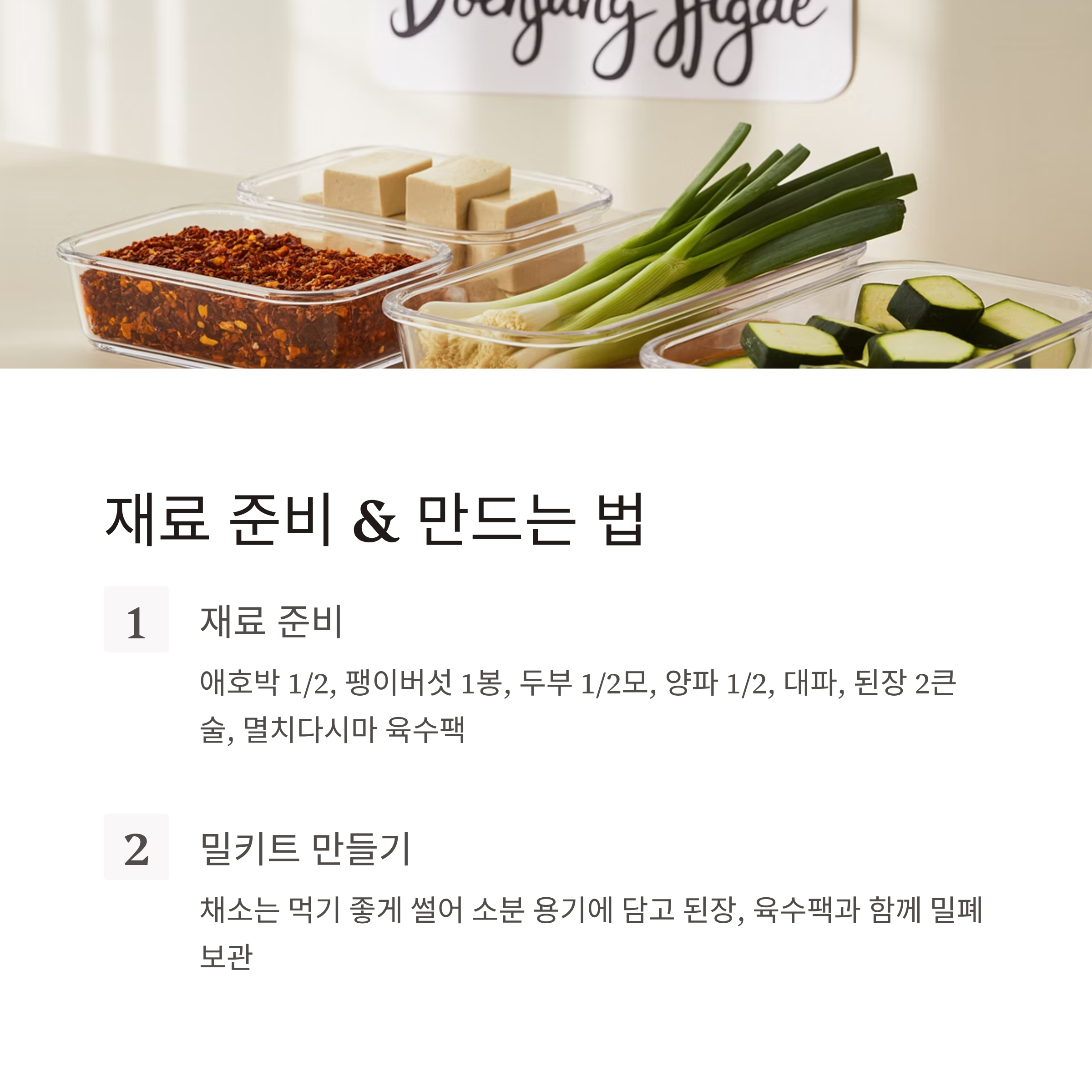 이럴 때 직접 만든 밀키트를 냉장·냉동 보관해 두면 언제든 간편하게 끓일 수 있습니다.