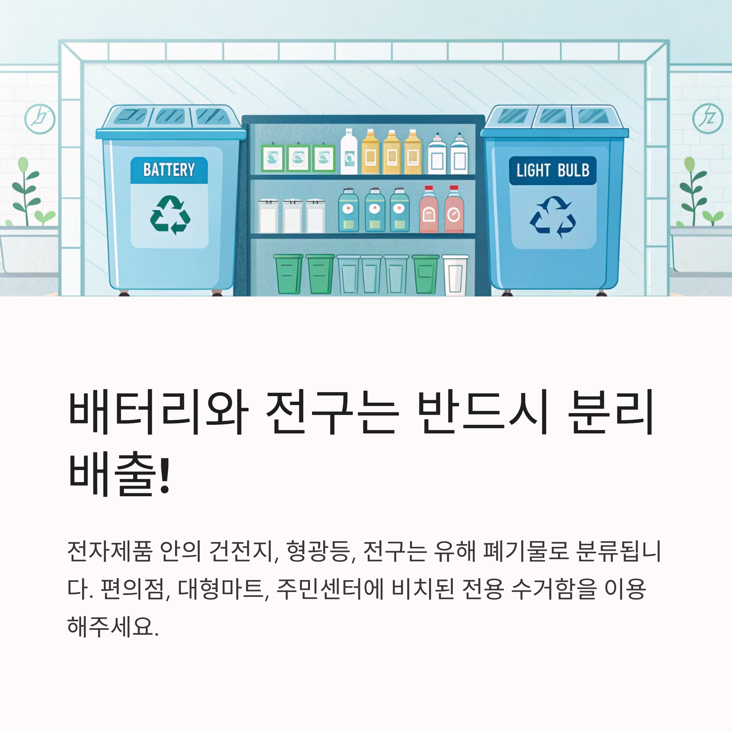 배터리나 형광등, 전구는 따로 분리 배출해야 해요