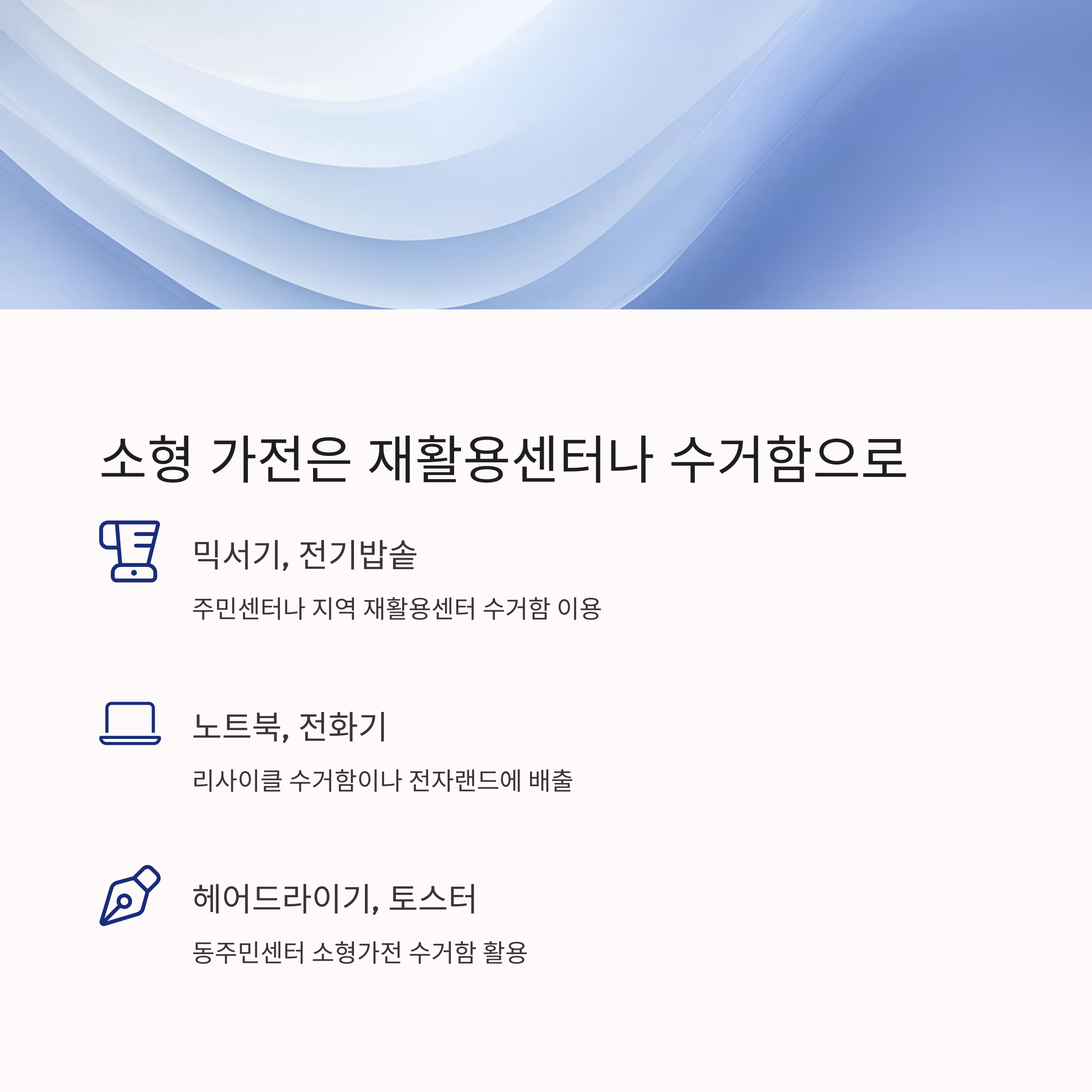 | 믹서기, 전기밥솥 | 재활용센터, 주민센터 수거함 이용 |