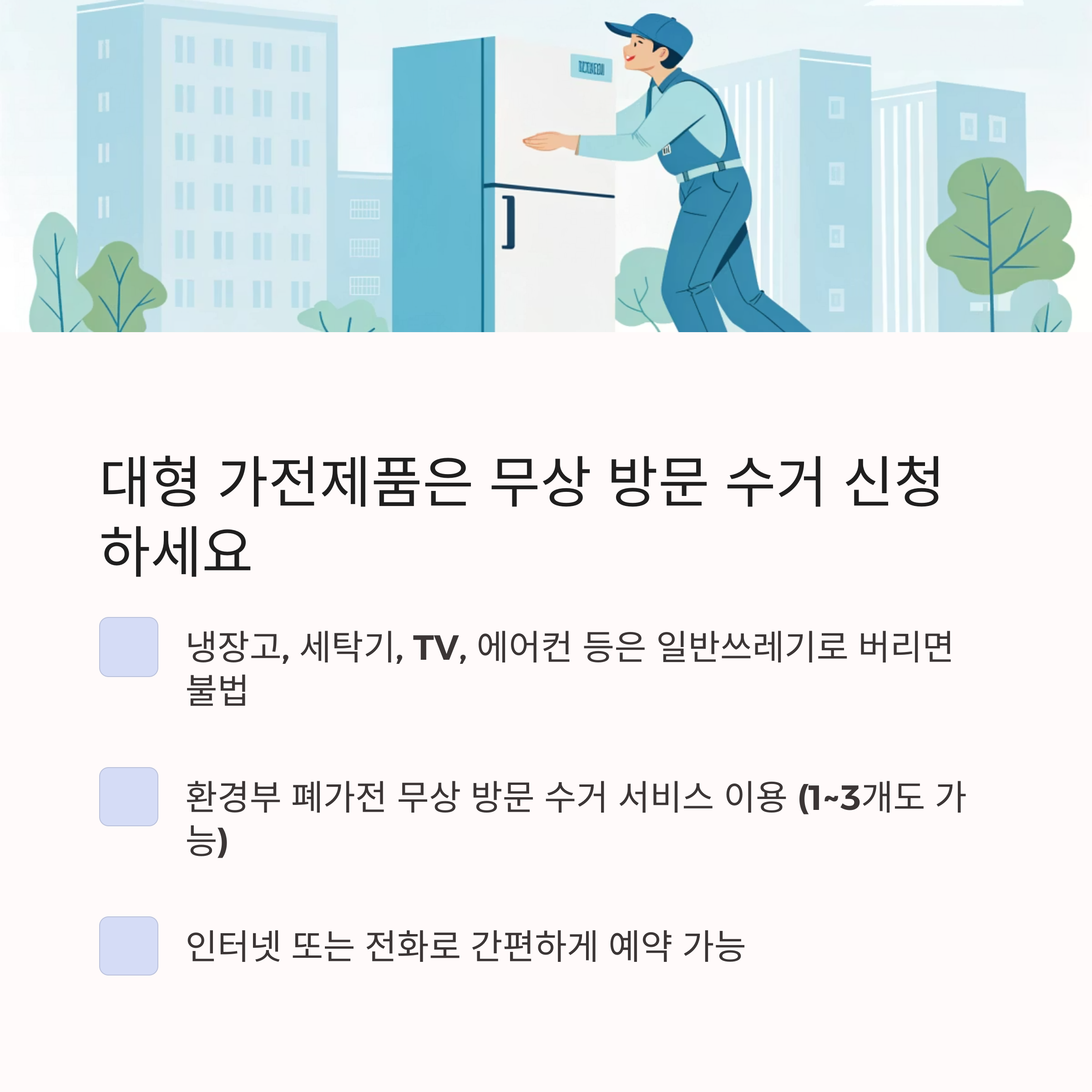 | 세탁기, TV, 에어컨 | 인터넷 또는 전화로 예약 후 수거 진행 |