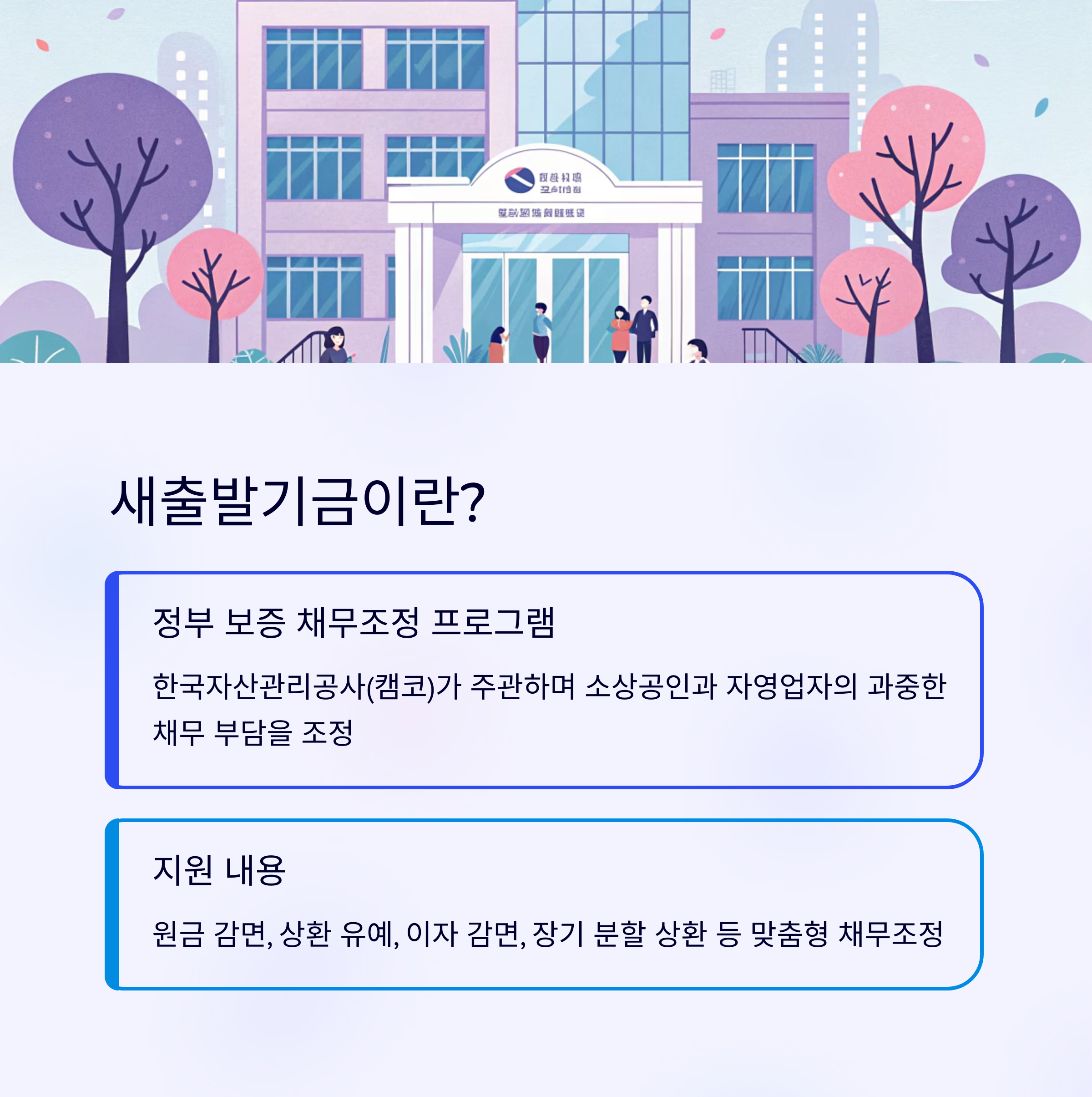 코로나 이후 급격한 경기침체와 고금리 여파로 인해 빚 부담을 안고 살아가는 자영업자와 소상공인이 많아졌습니다. 이들을 위해 정부는 ‘새출발기금’을 중심으로 다양한 채무조정 및 가계지원 제도를 마련해 실질적인 재기 기회를 제공하고 있습니다. 본 글에서는 새출발기금의 지원내용과 신청 조건, 가계단위 지원과의 연계 방법까지 체계적으로 정리해드립니다.