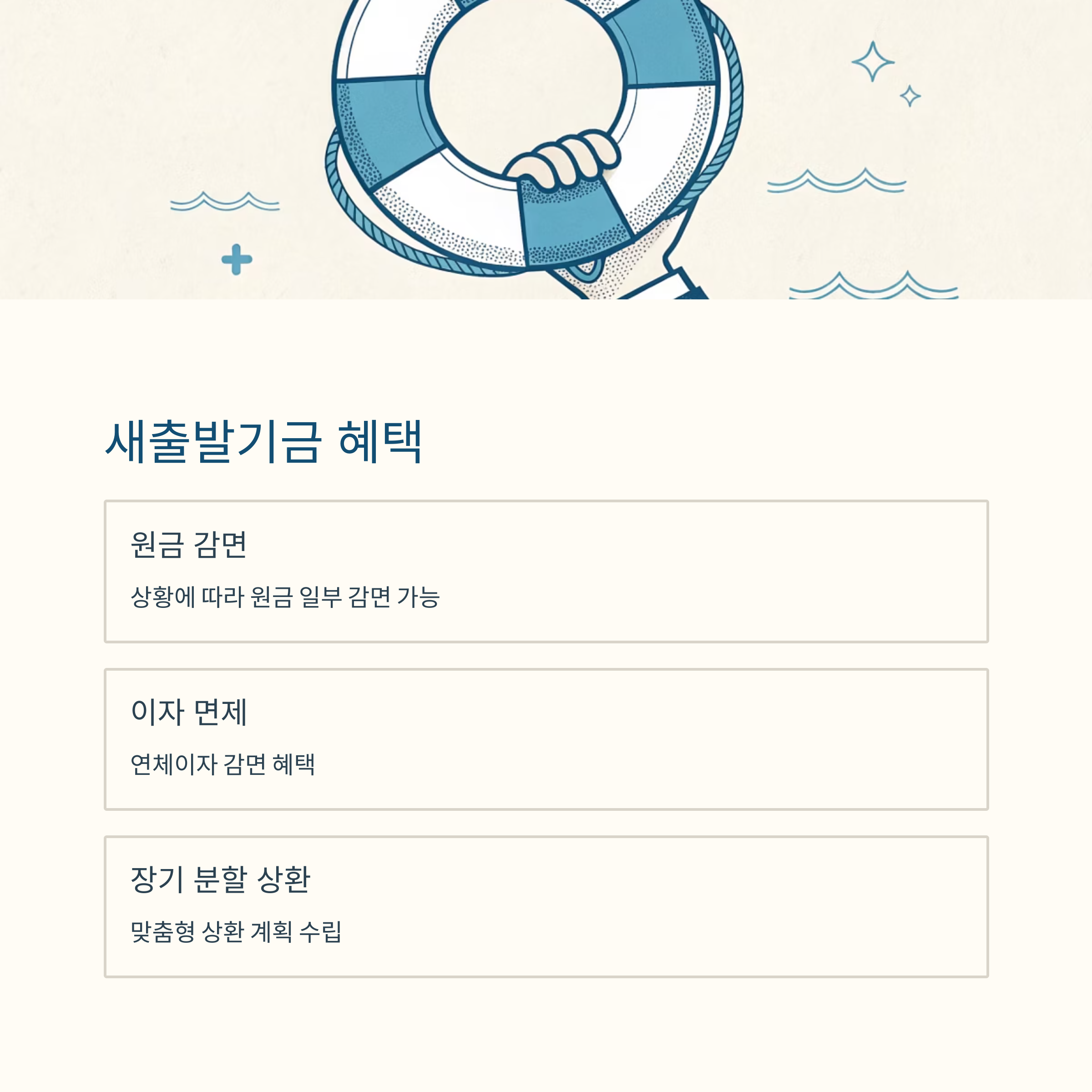 | 혜택 | 원금 감면, 이자 면제, 상환 유예, 장기 분할 |