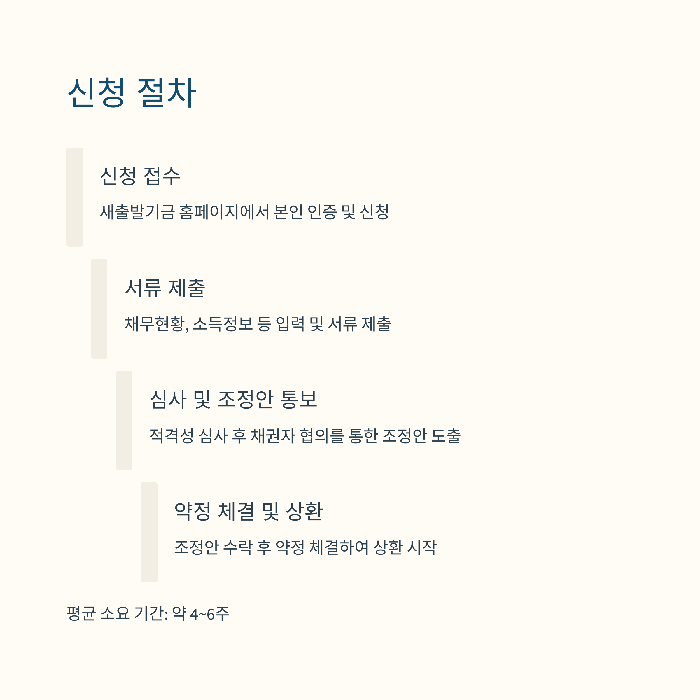 | 5단계 | 조정안 수락 후 약정 체결 → 상환 개시 |