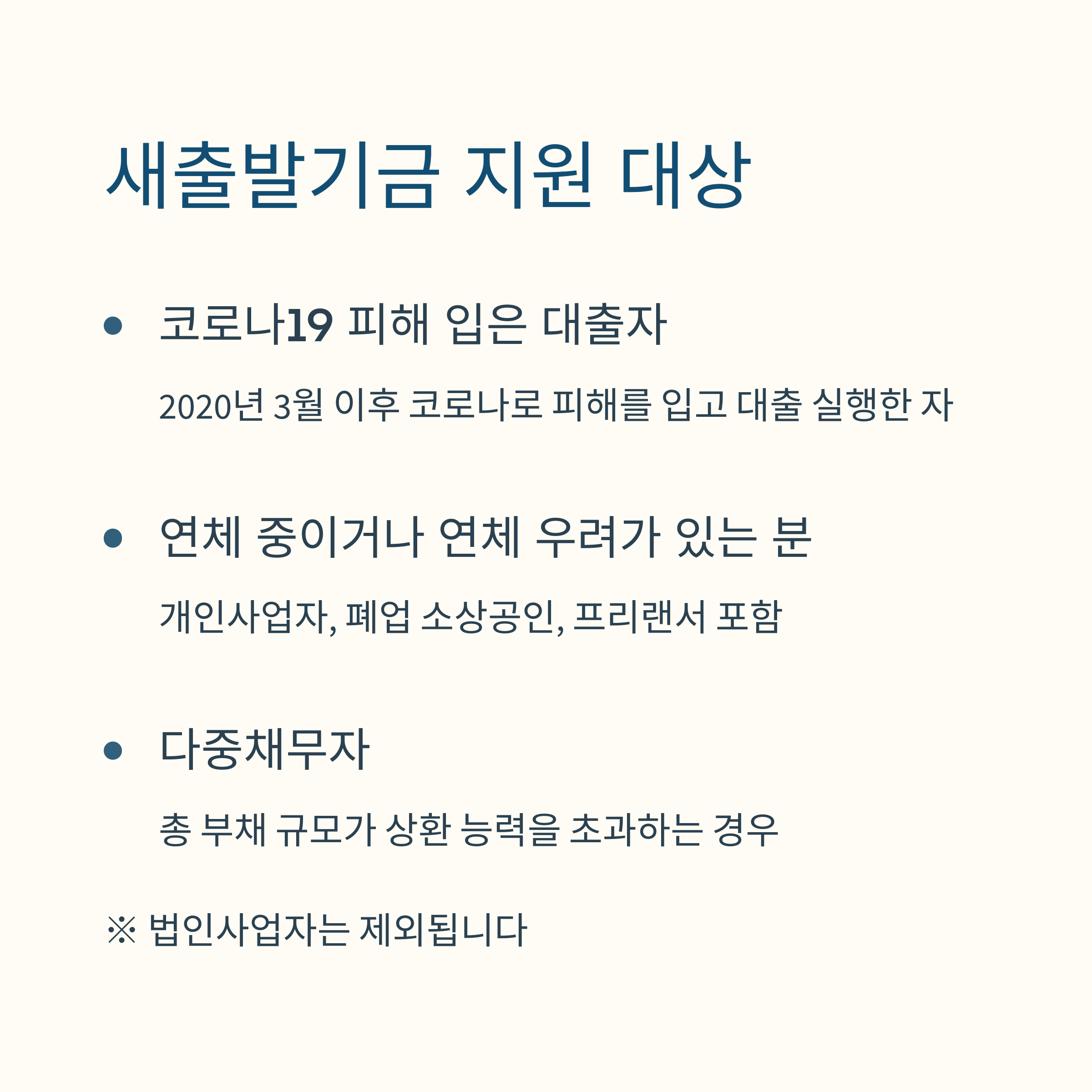 - 개인사업자, 폐업 소상공인, 프리랜서 포함