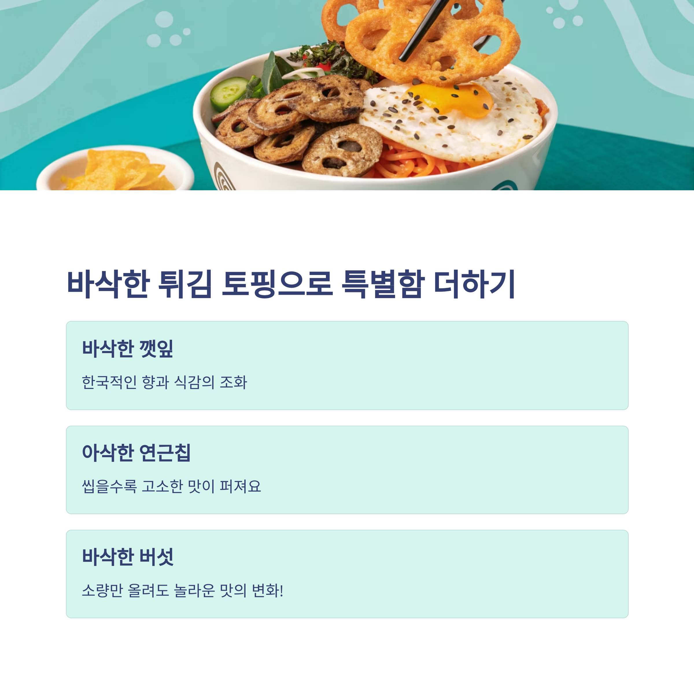 바삭한 식감이 부드러운 나물과 어우러지며