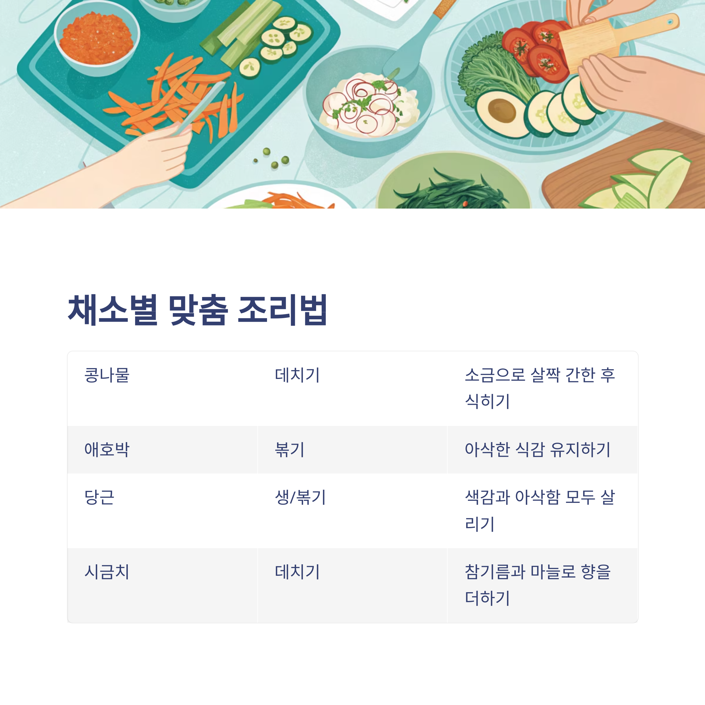 채소별 어울리는 조리법 정리