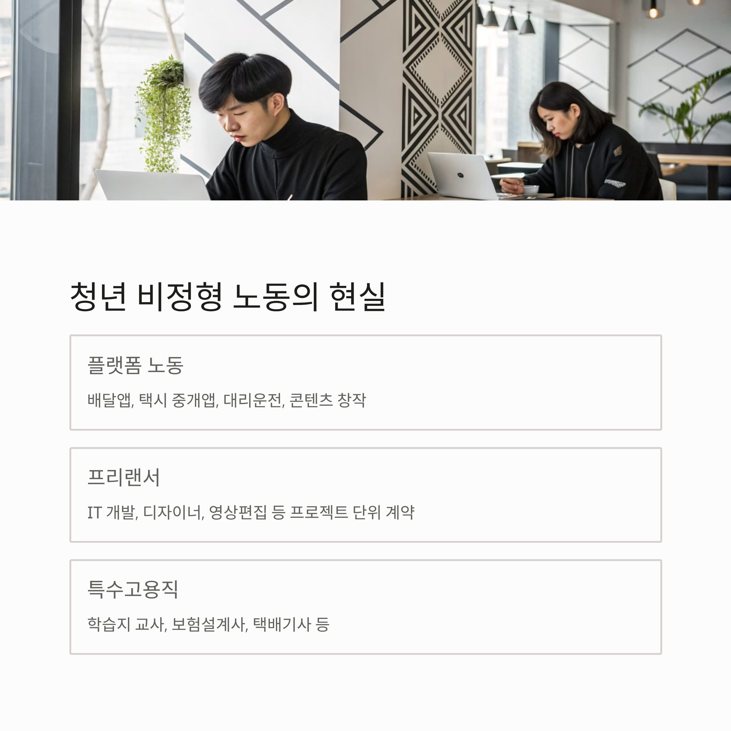 이번 글에서는 청년 비전형 노동의 실태와 구조적 문제,