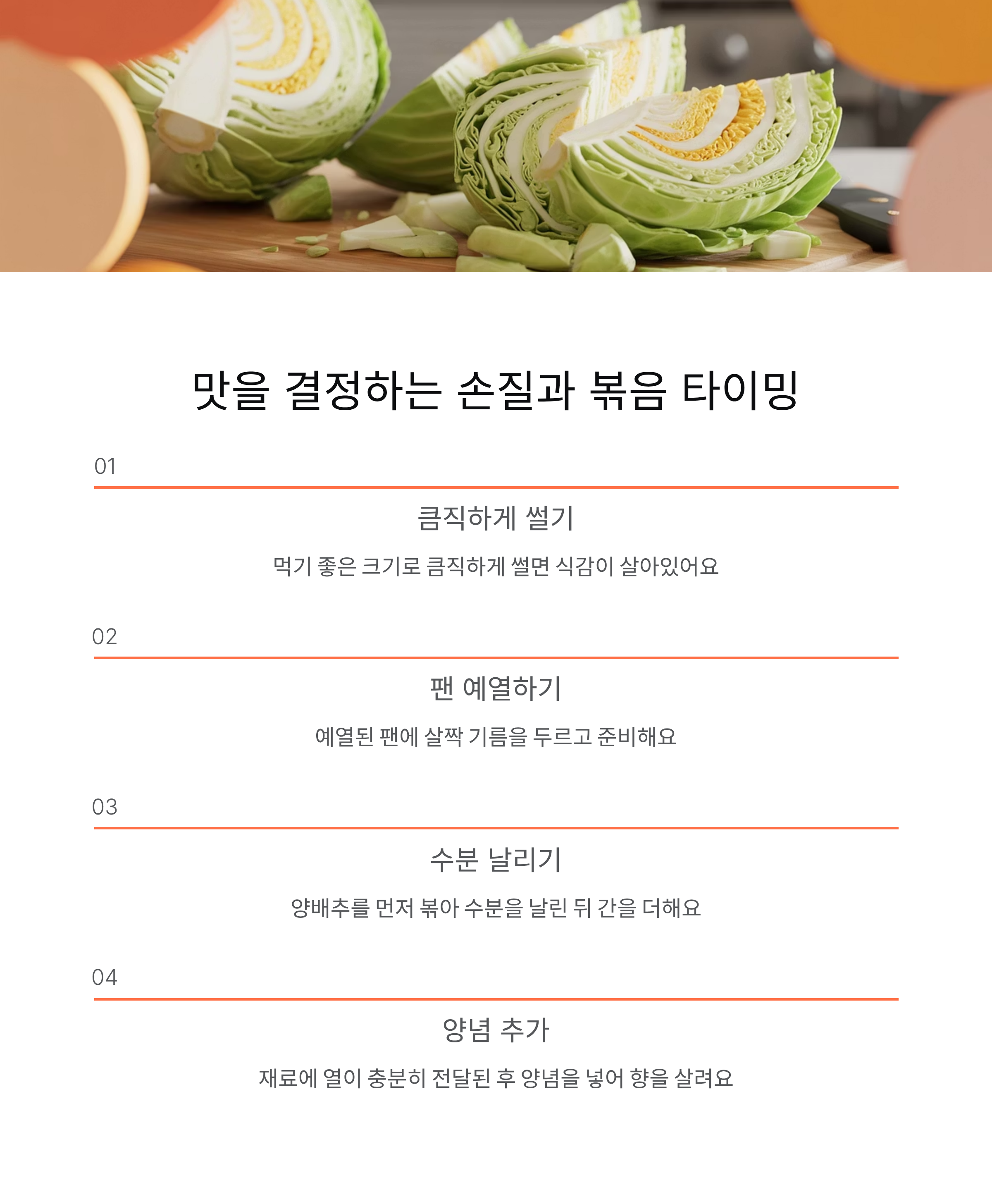 양배추의 자연스러운 단맛을 활용하는 조리 흐름