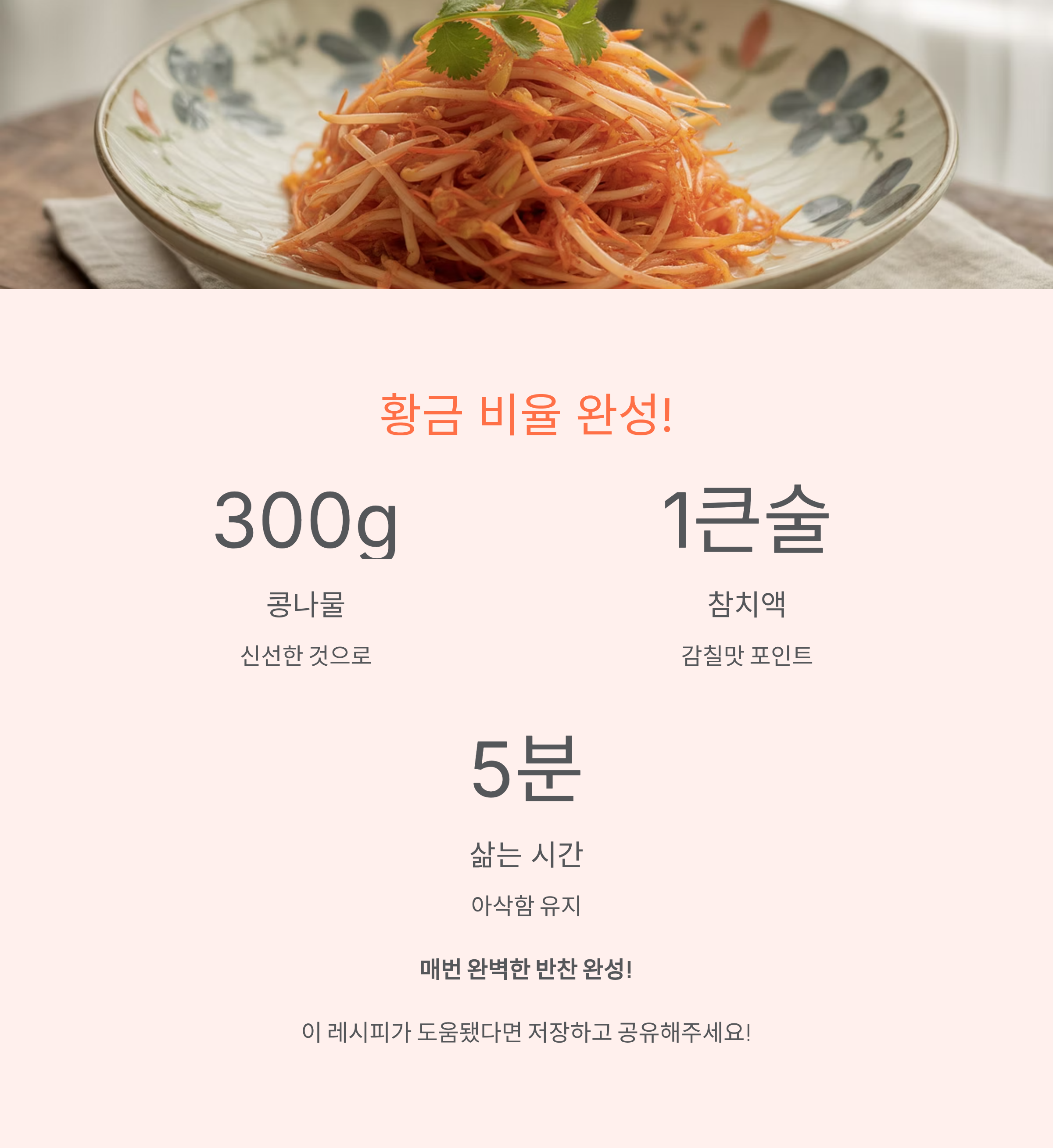 콩나물무침은 간단해 보이지만 삶는 시간과 양념 선택이 맛을 좌우합니다.