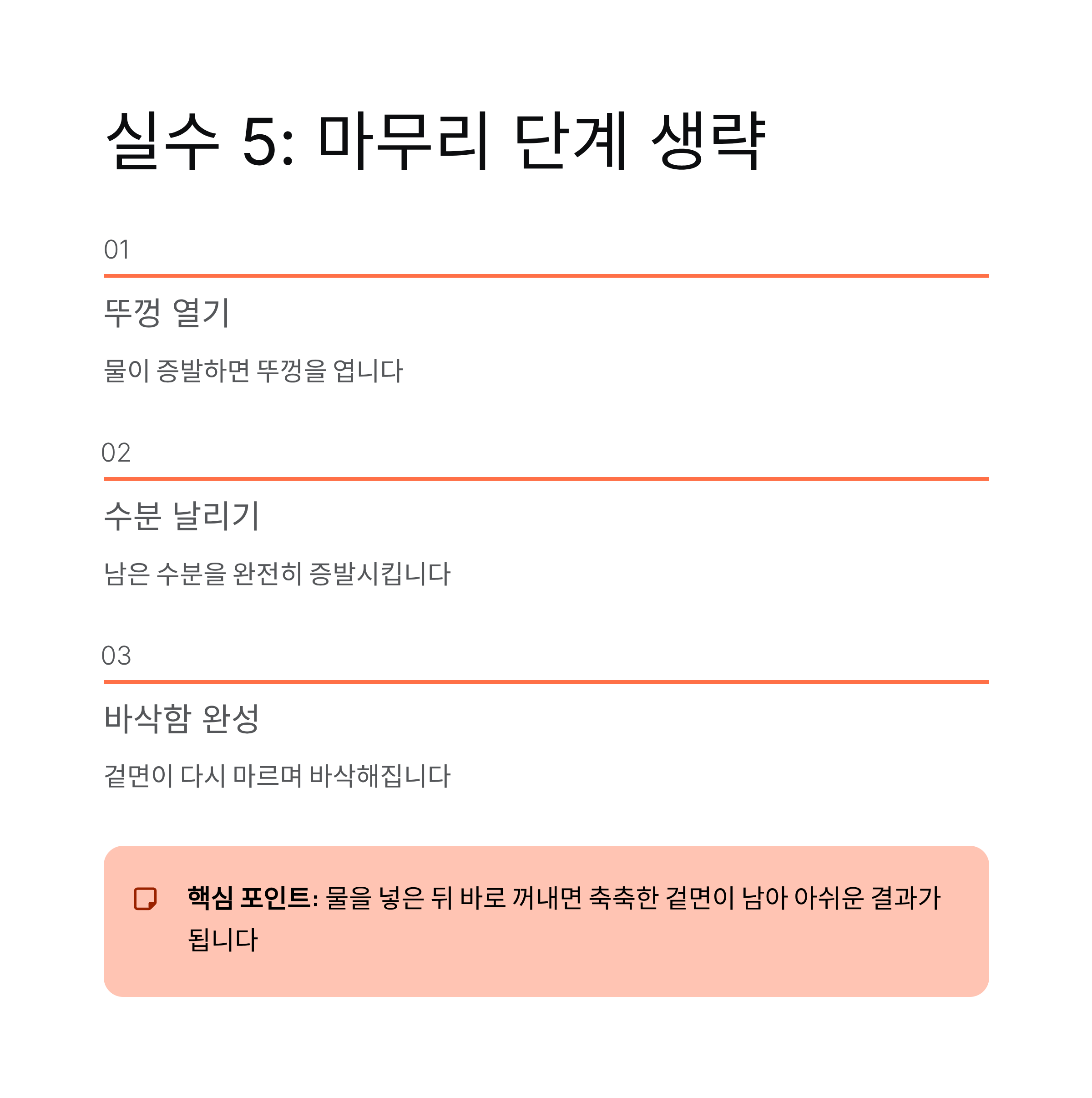 네 번째 실수 물을 넣지 않고 끝까지 굽는 경우