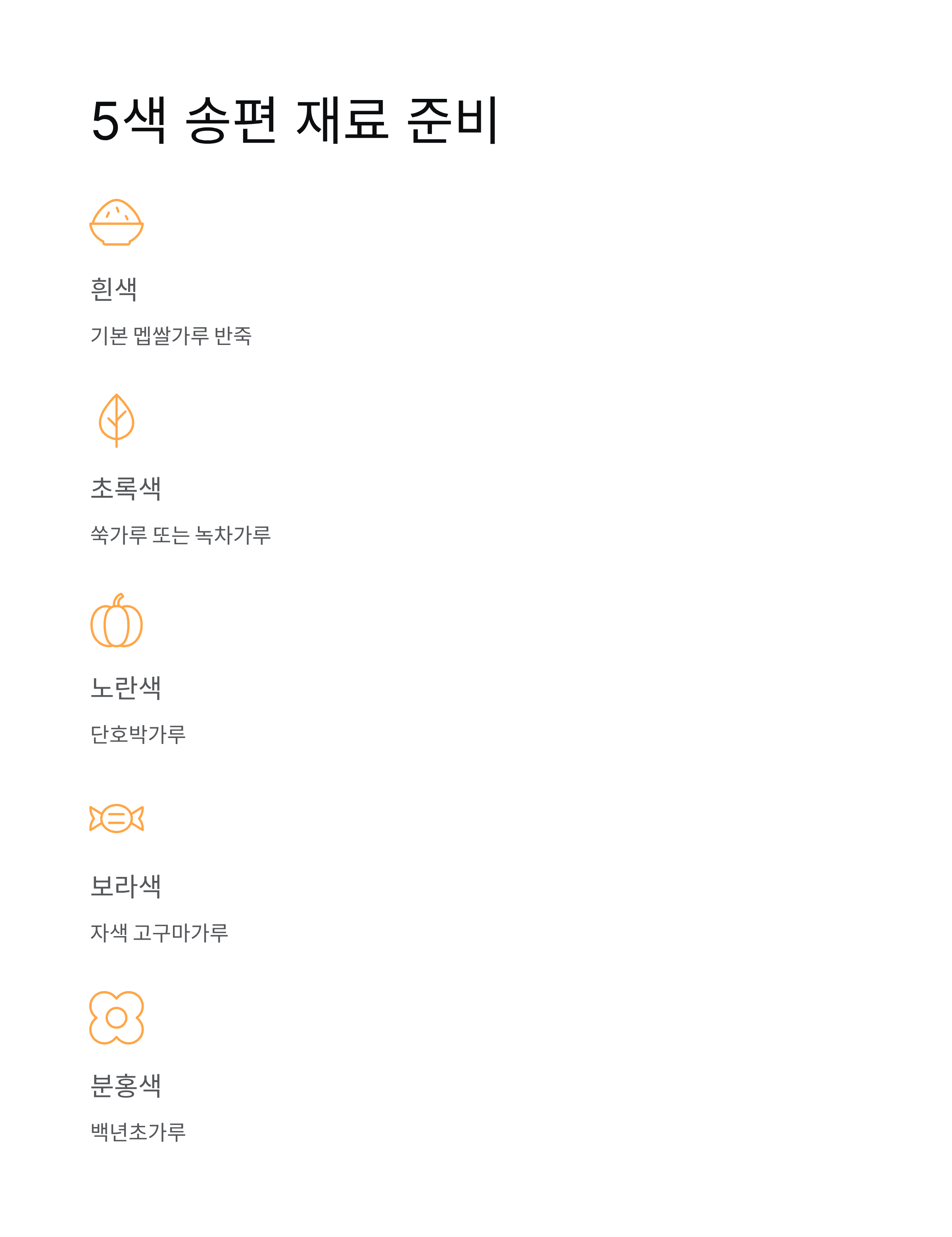 이번 글에서는 반죽 준비부터 색을 내는 방법, 송편 빚기와 찌는 과정까지 자세한 레시피를 정리해 드리겠습니다.