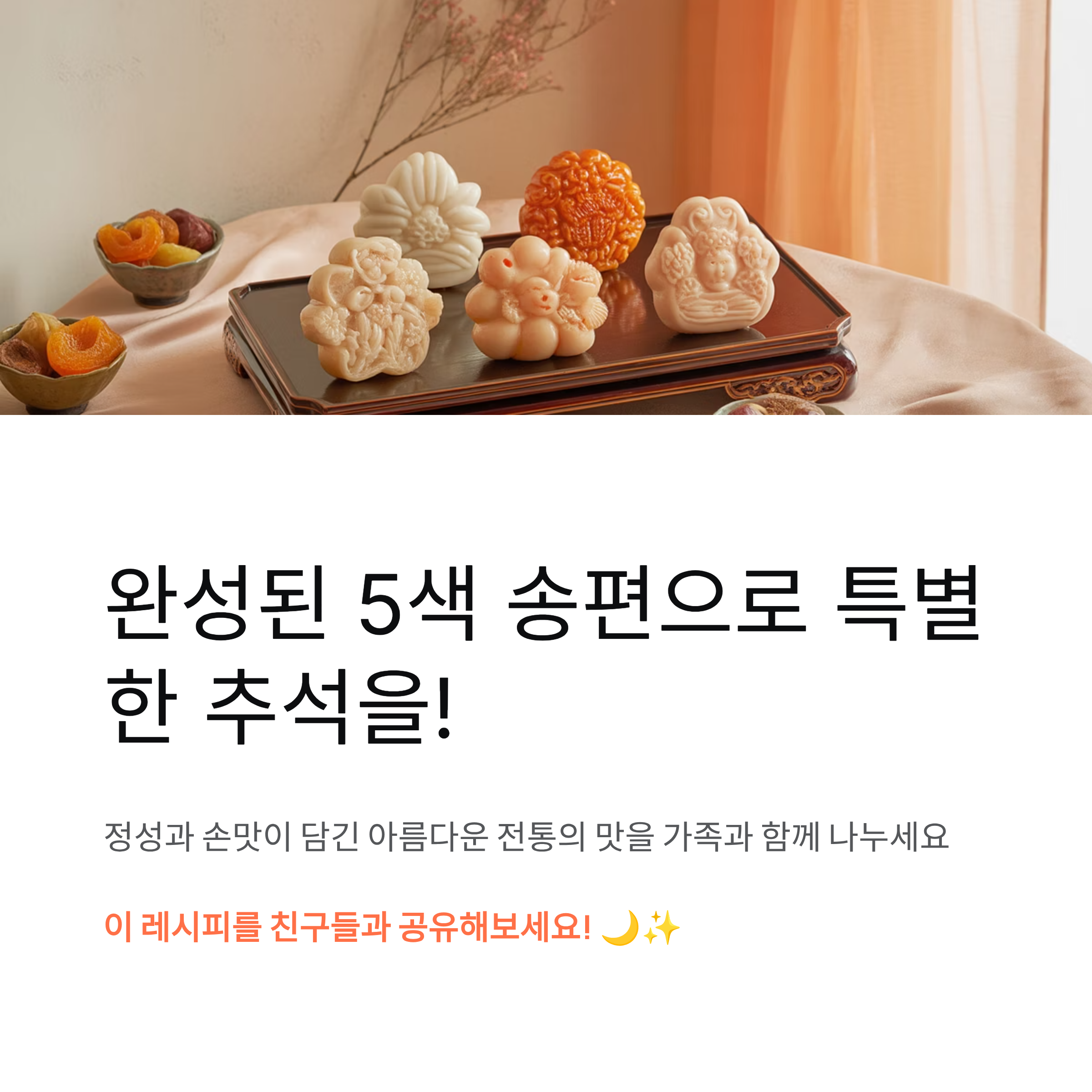 특히 색을 입힌 송편은 단순한 맛을 넘어 시각적인 즐거움까지 주어 차례상과 식탁을 더욱 풍성하게 만들어 줍니다.