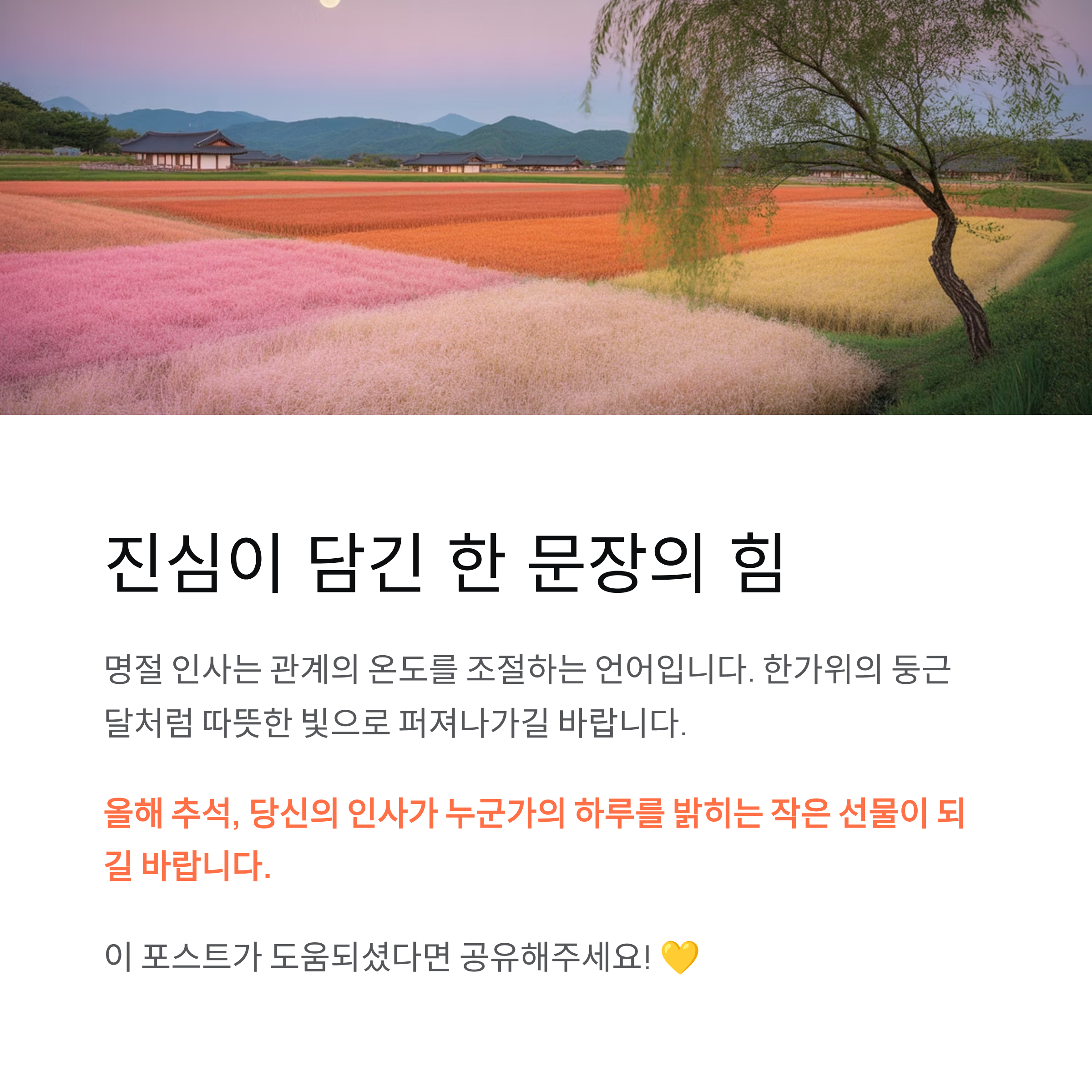 명절 인사는 결국 형식이 아니라 ‘마음의 표현’임을 잊지 마세요.