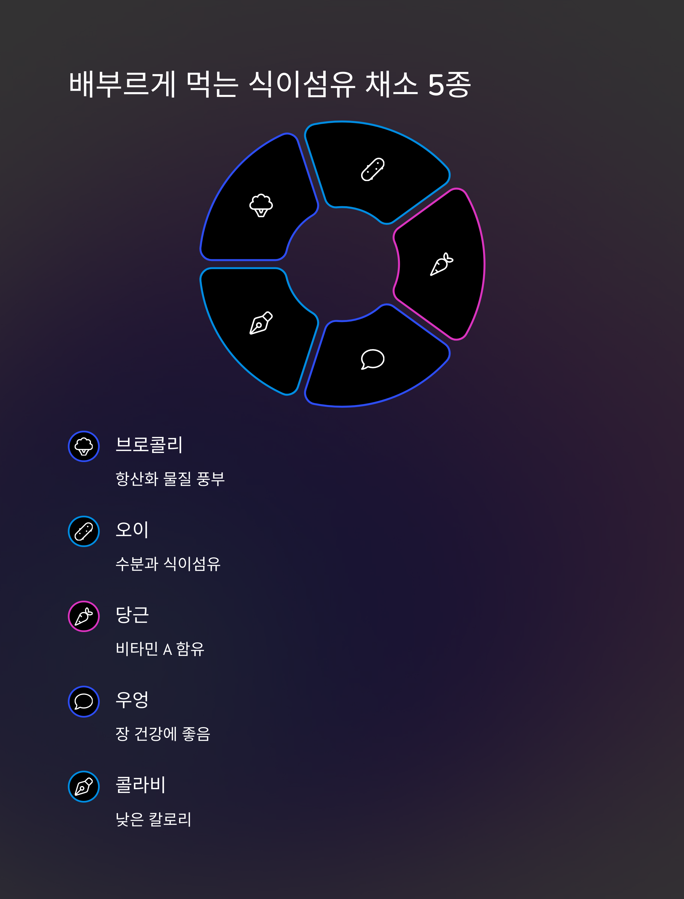 식이섬유 채소 5종으로 배불리 먹기