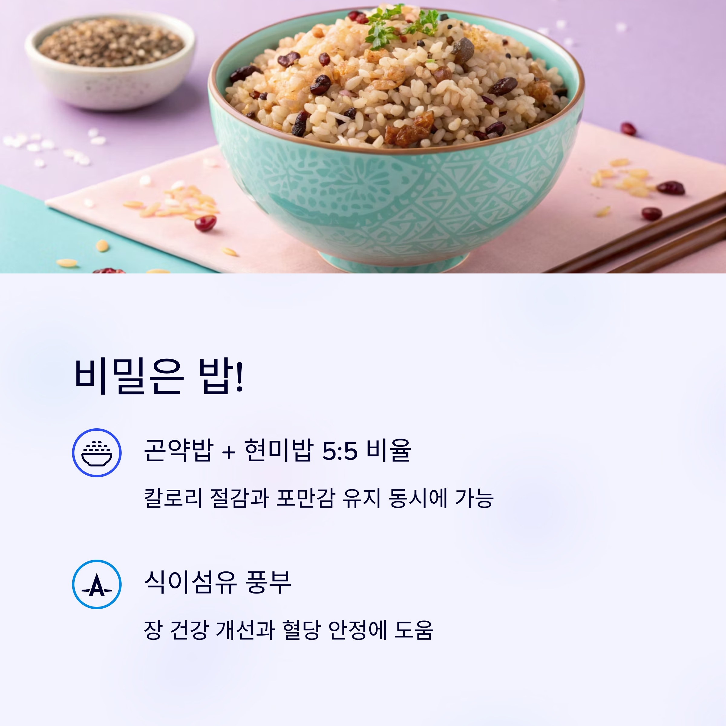 적은 양으로도 포만감을 오래 유지해주며 장 활동을 돕습니다.